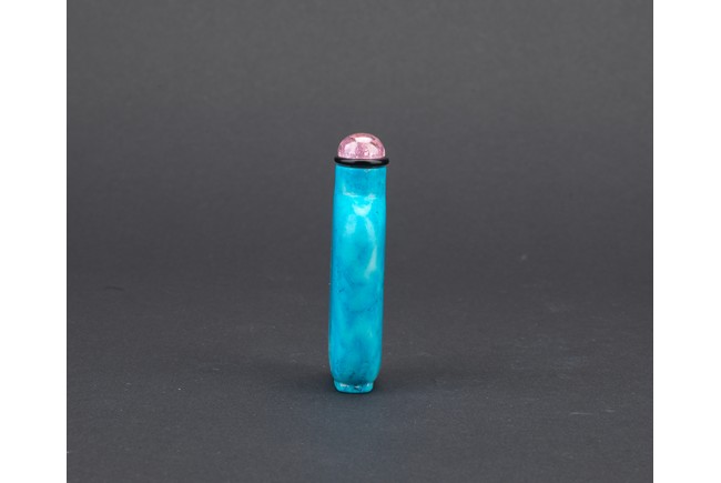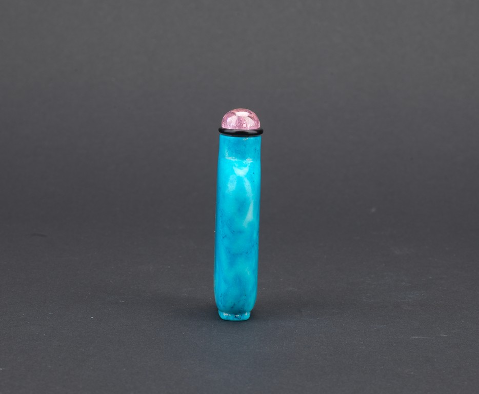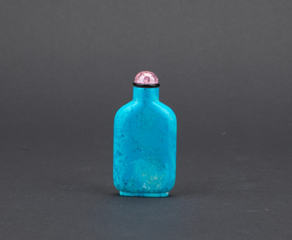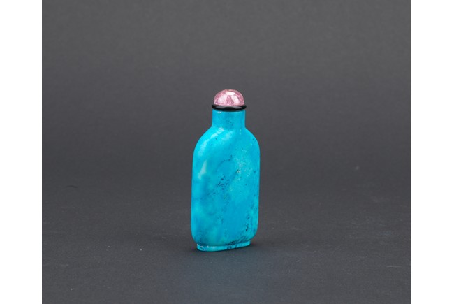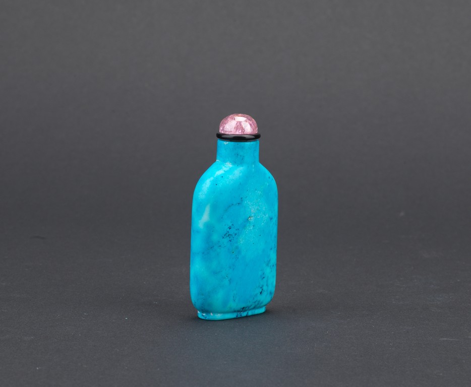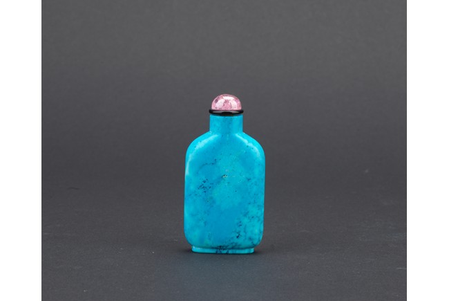 A TURQUOISE CARVED SNUFF BOTTLE 清 綠松石折方鼻煙壺