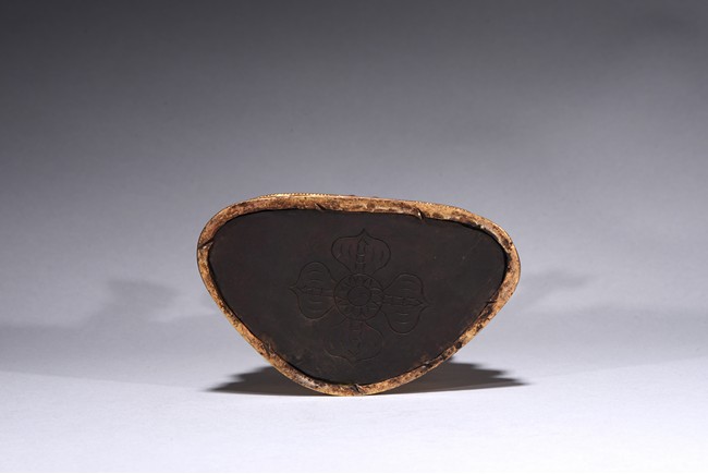 蓮花生是佛國聖地烏仗那人,藏傳佛教寧瑪派的著名祖師。吐蕃時期,蓮花生應吐蕃贊普赤松德贊邀請入藏傳法,其一路降妖伏魔,入藏後於779年建立西藏歷史上的第一座寺廟桑耶寺。蓮師頭戴蓮花帽,雙眉微蹙,雙目圓睜,神情威嚴。兩綹上翹的小鬍子,表情介於寂靜與忿怒之間。耳垂圓璫,內穿交領僧衣,肩披坎肩,領口翻轉有致,盡顯衣物輕盈的質感。衣褶自然流暢鋪於座面上,具有很強的寫實性。結跏趺坐於仰覆式束腰蓮座上。此件造像人物形象栩栩如生,工藝精緻完美,品相完好。