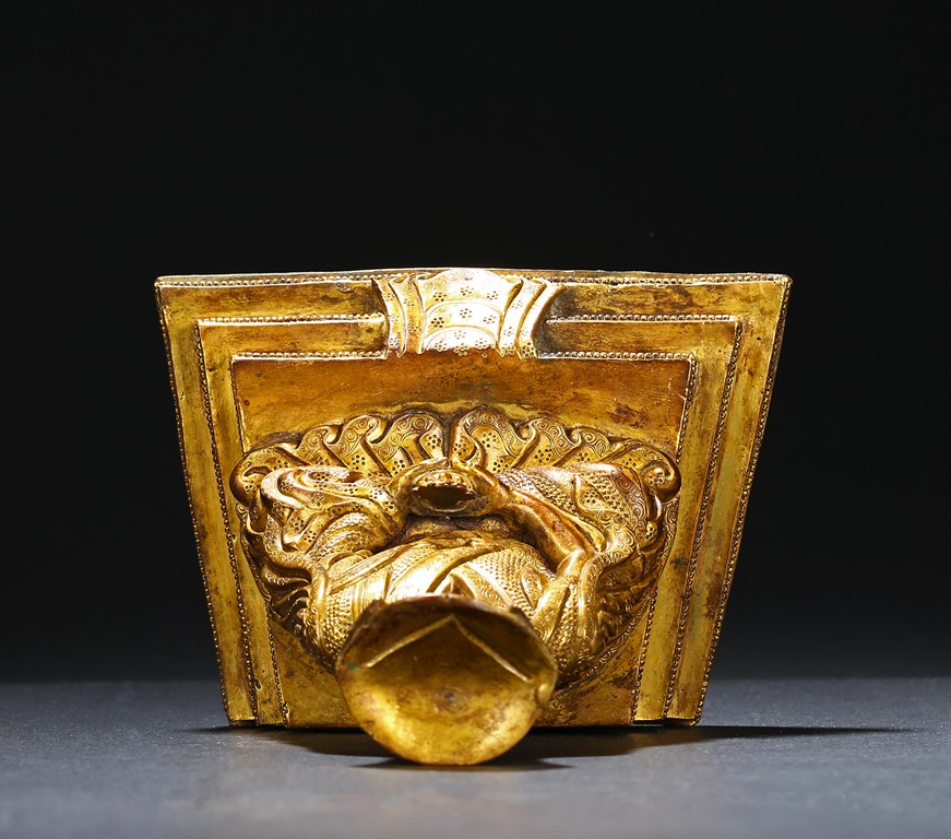 噶舉派是藏傳佛教後弘期的重要派別之一,其教法傳承來源於印度,主要修法有《大手印》等法門。在噶舉派一千多年的發展歷程中,誕生了無數的高僧大德,他們對藏傳佛教的發展與弘揚作出了巨大貢獻。本尊上師全跏趺端端身正坐,內著交領藏袍,雙手捧寶瓶。雙腿完全被覆蓋於厚重的衣袍之下,衣褶、禪修墊及墊布雕刻流暢、紋飾繁複。