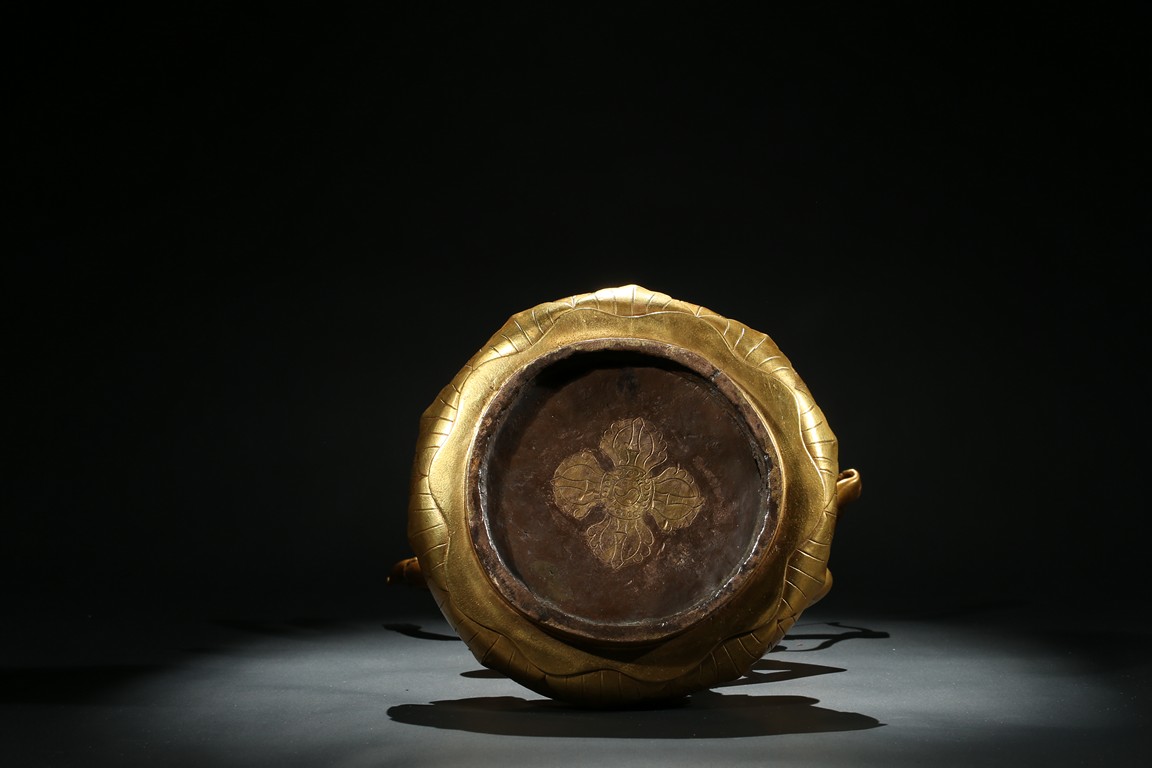 此件銅鎏金智行佛母為十八世紀蒙古風格造像。智行佛母藏語名“咕嚕咕力”,意即智行,她是一尊有著極大威力和成就的怒相女性神靈。此尊造像赤髮如火焰般豎立而上,頭戴五骷髏冠,面相豐圓,三目睜視,張牙咧嘴。左腿踩在邪魔上,右腿屈盤,展現動態和諧之美。整件器物鎏金厚重,工藝精湛,保存完好,品相一流。