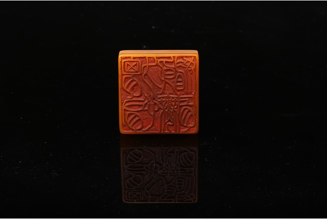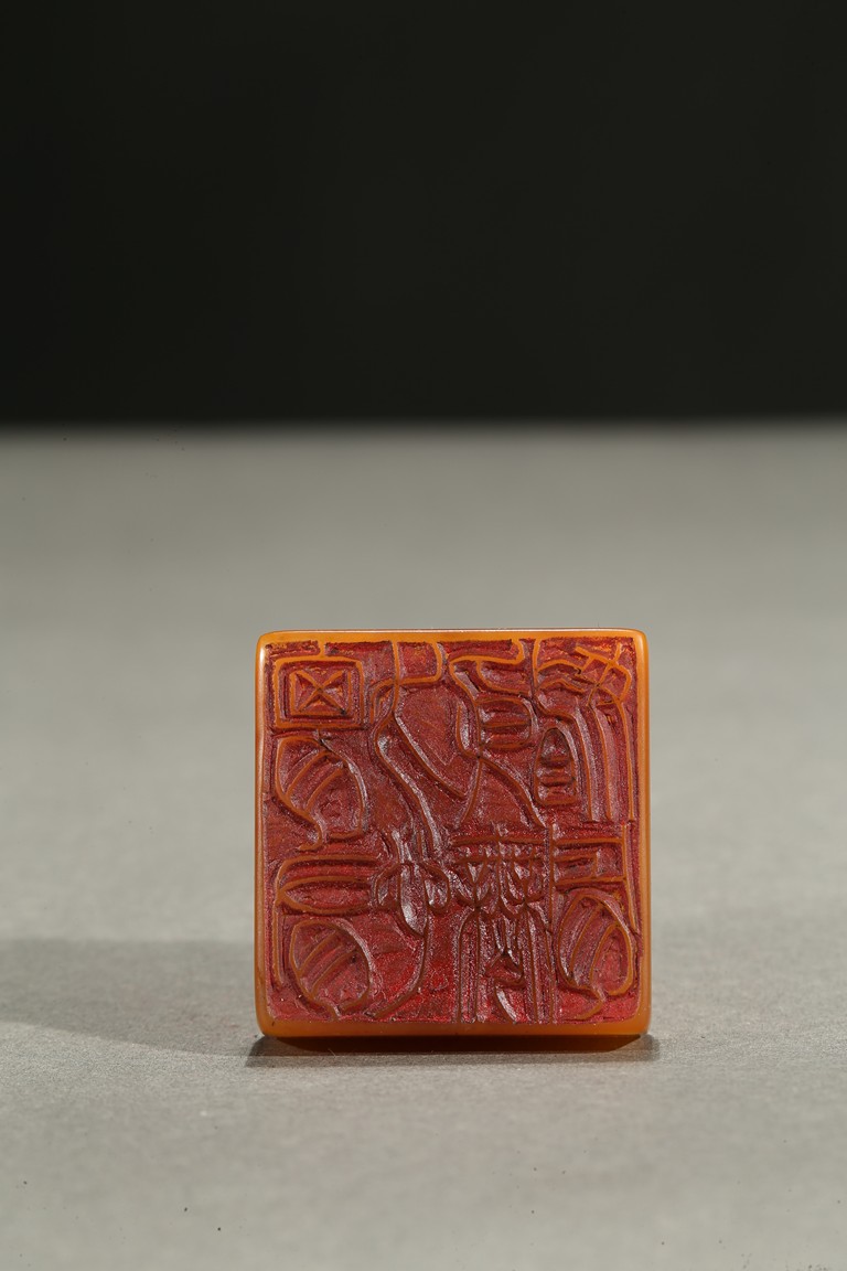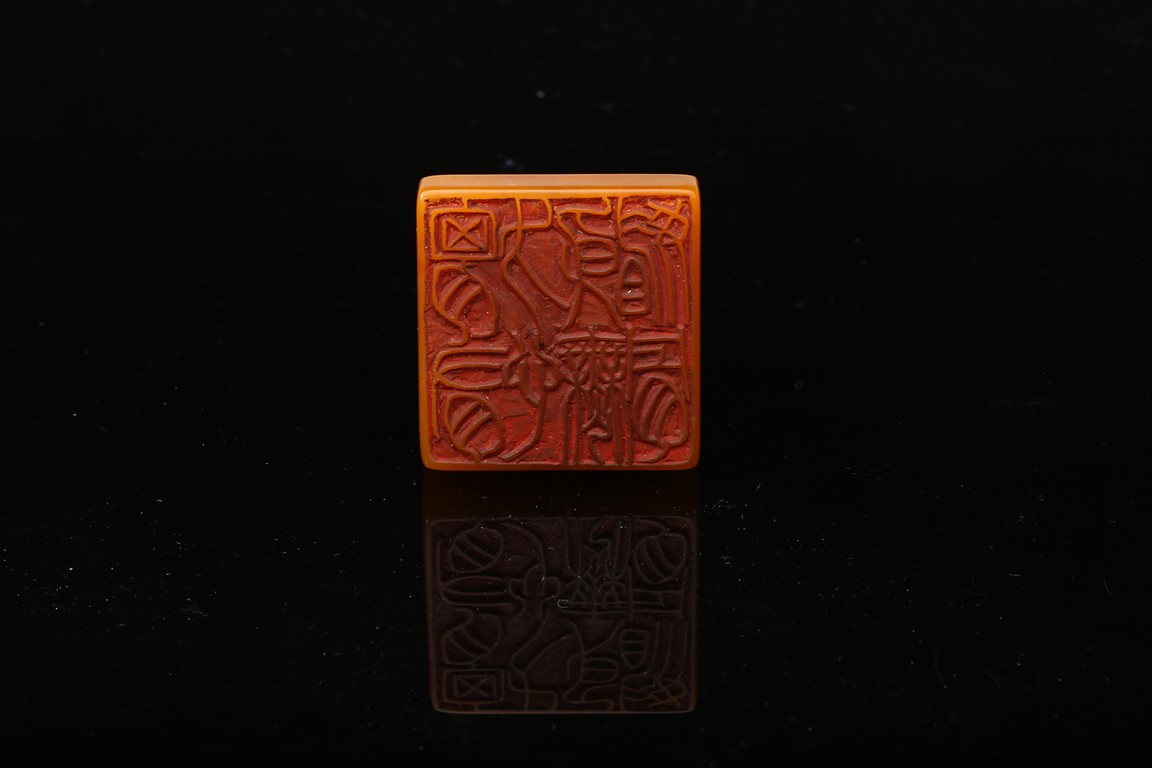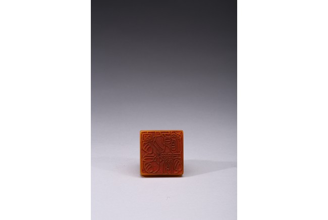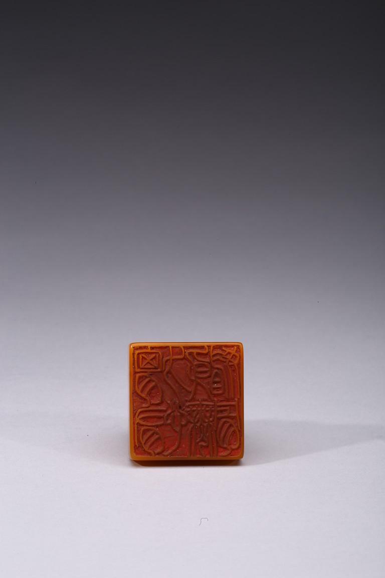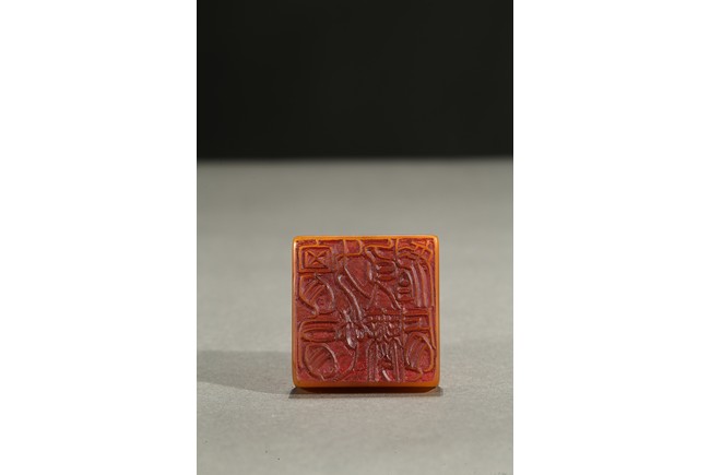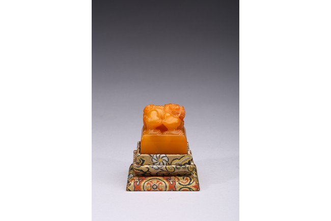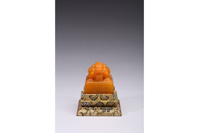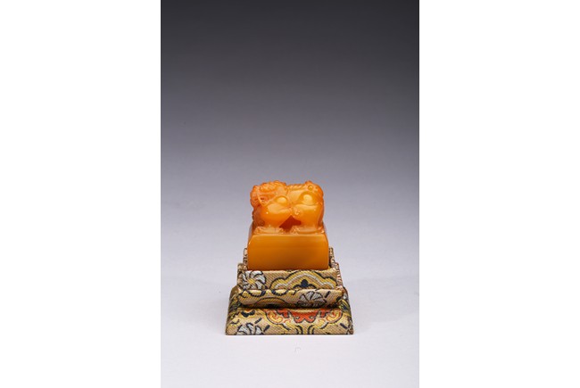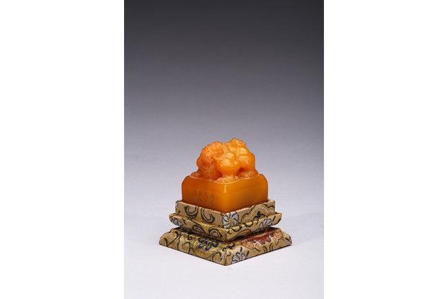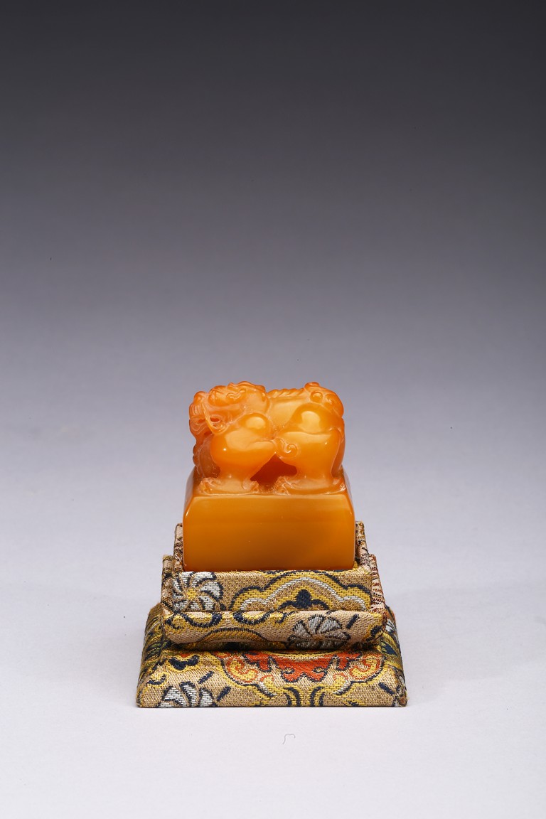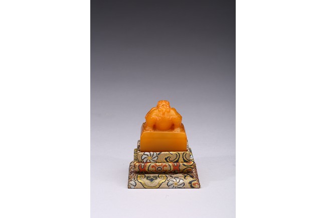 Of rectangular form, the seal top surmounted with a mythical beast standing foursquare with mouth agape, one side of the seal carved with inscription. Republic period.