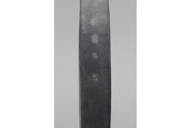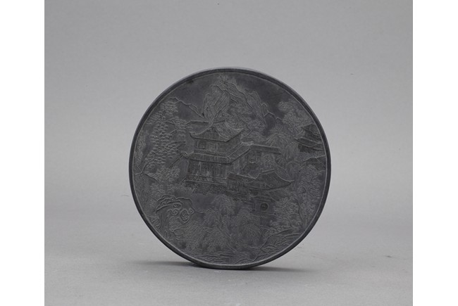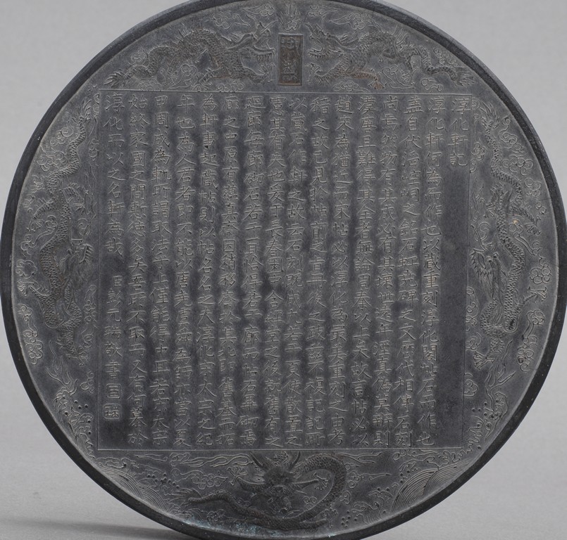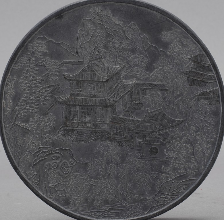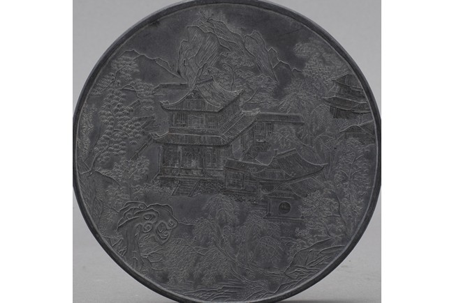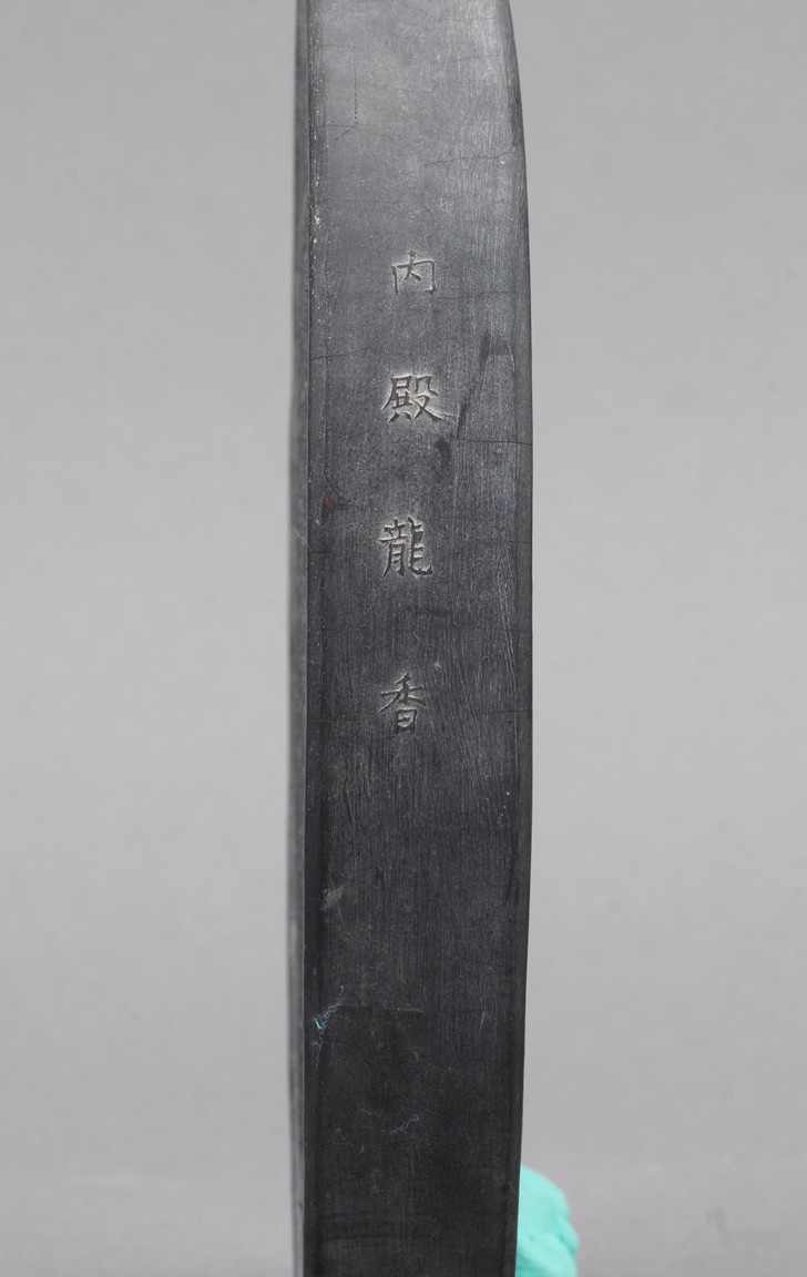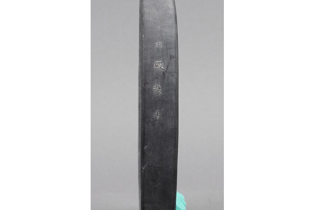 此墨色澤油潤,墨中泛光,質地細膩。正面山石矗立,亭台樓閣,一幅高士歸隱的場景,反面飾龍紋,又記載【淳化軒記】有“臣彭元瑞敬書”款識,彭元瑞(字掌仍,是清代大臣、學者、楹聯名家、乾隆二十二年進士)。