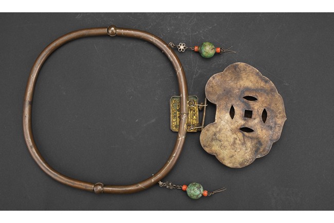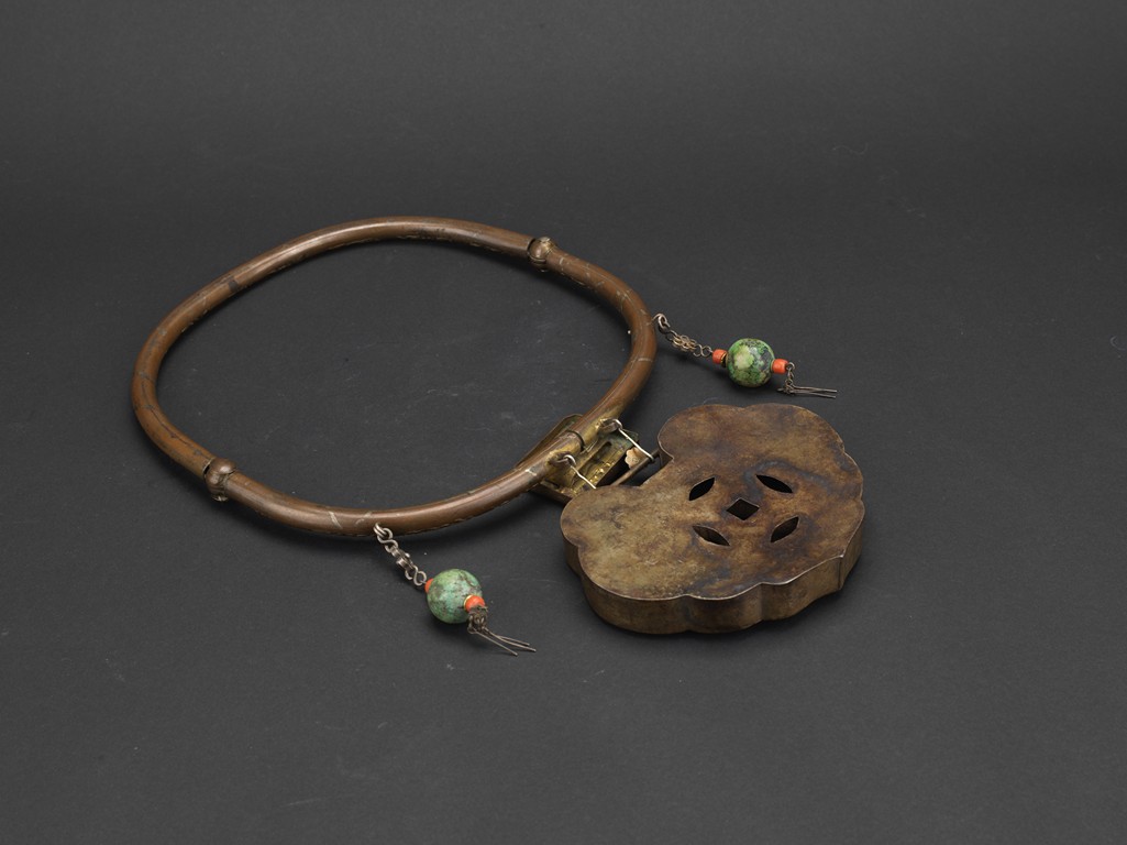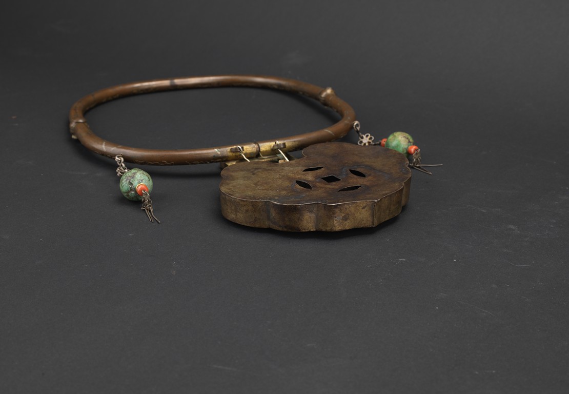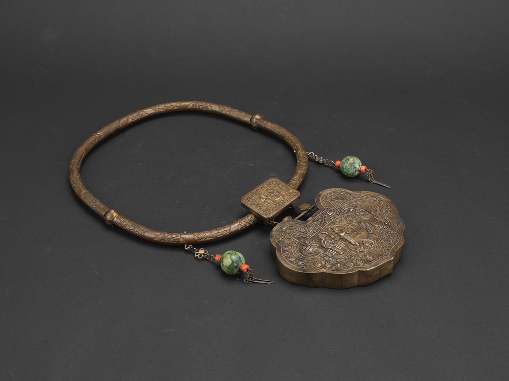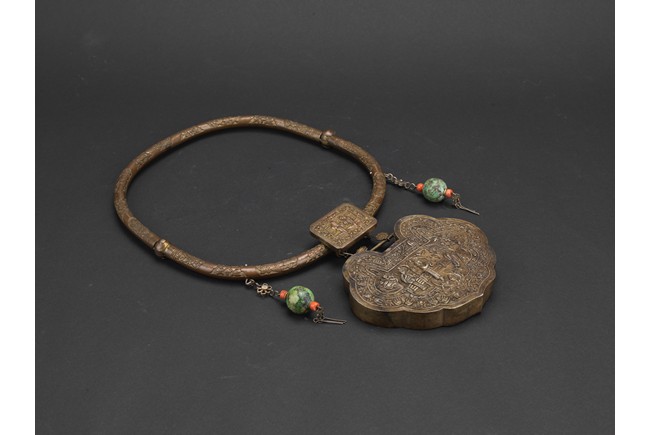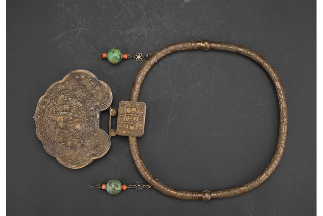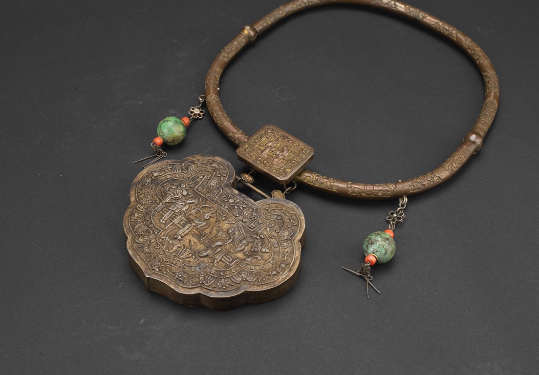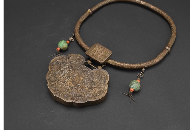 A SILVER 'FIGURES' LOCK 清 銀人物紋長命鎖