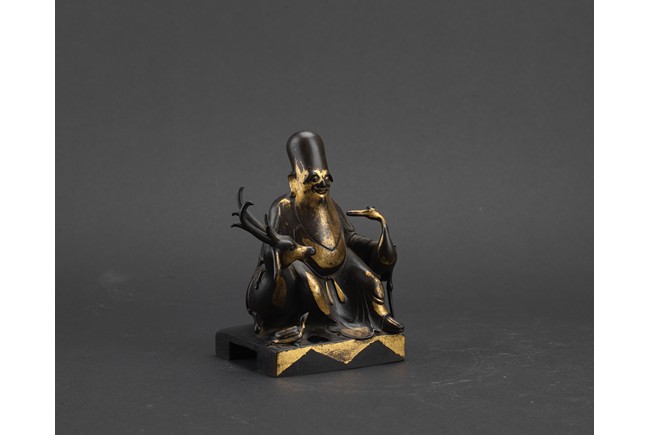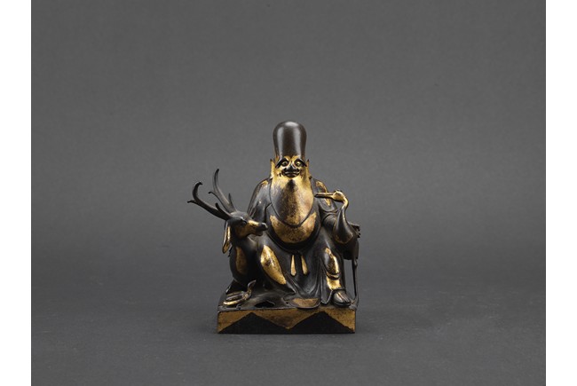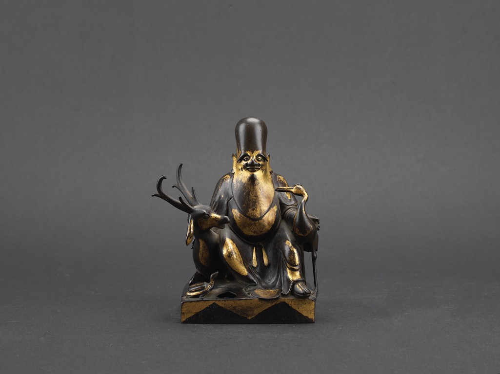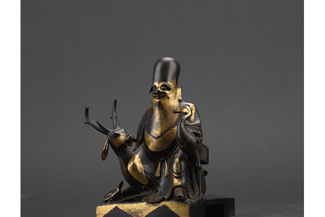 A PARCEL-GILT BRONZE FIGURE OF SHOULAO 清 銅局部鎏金壽星