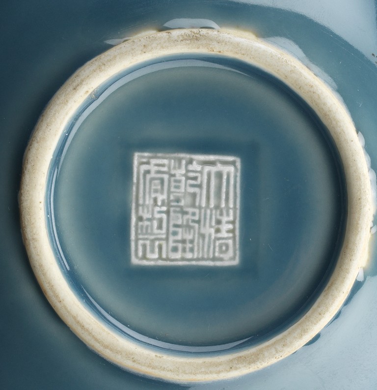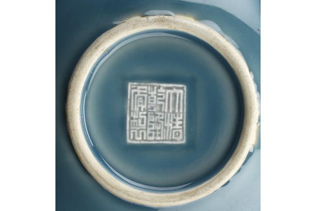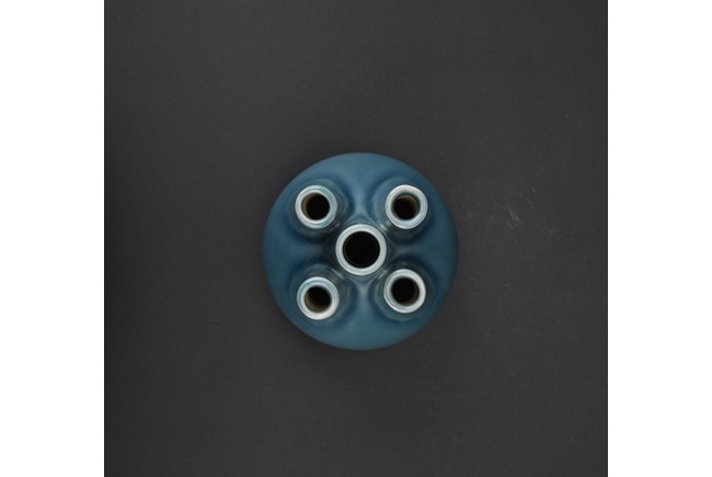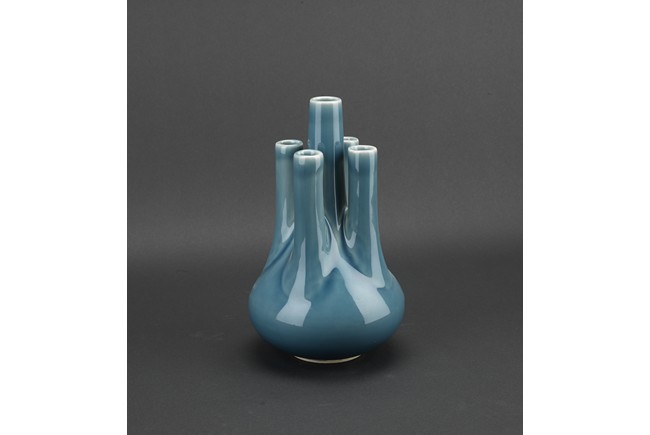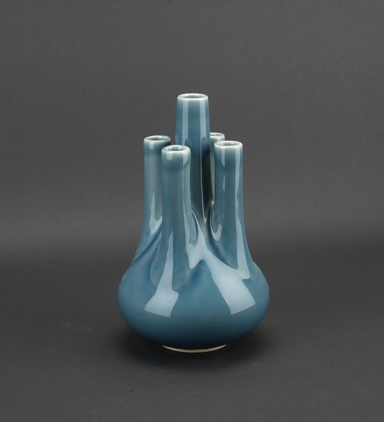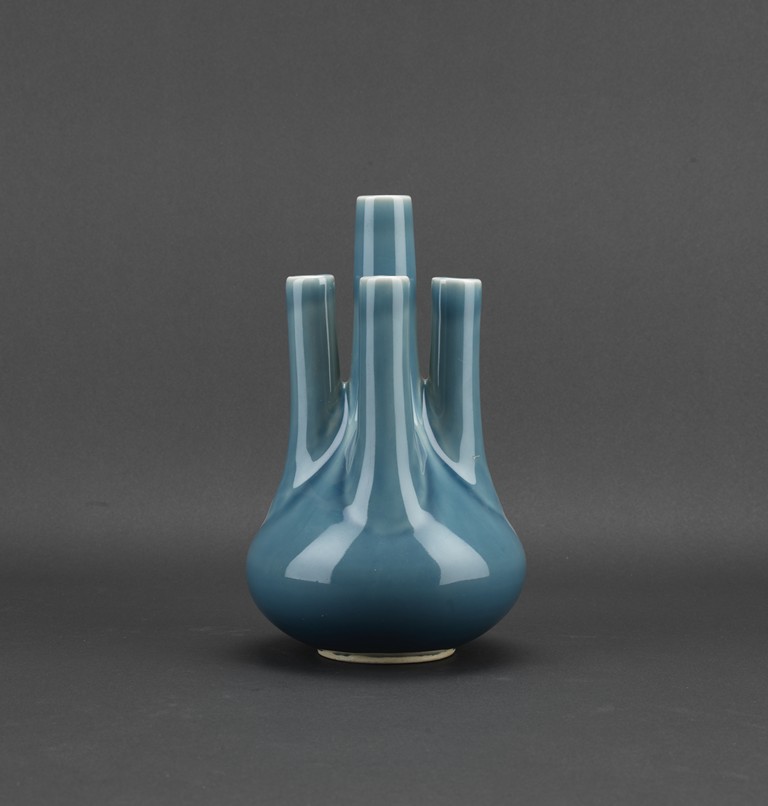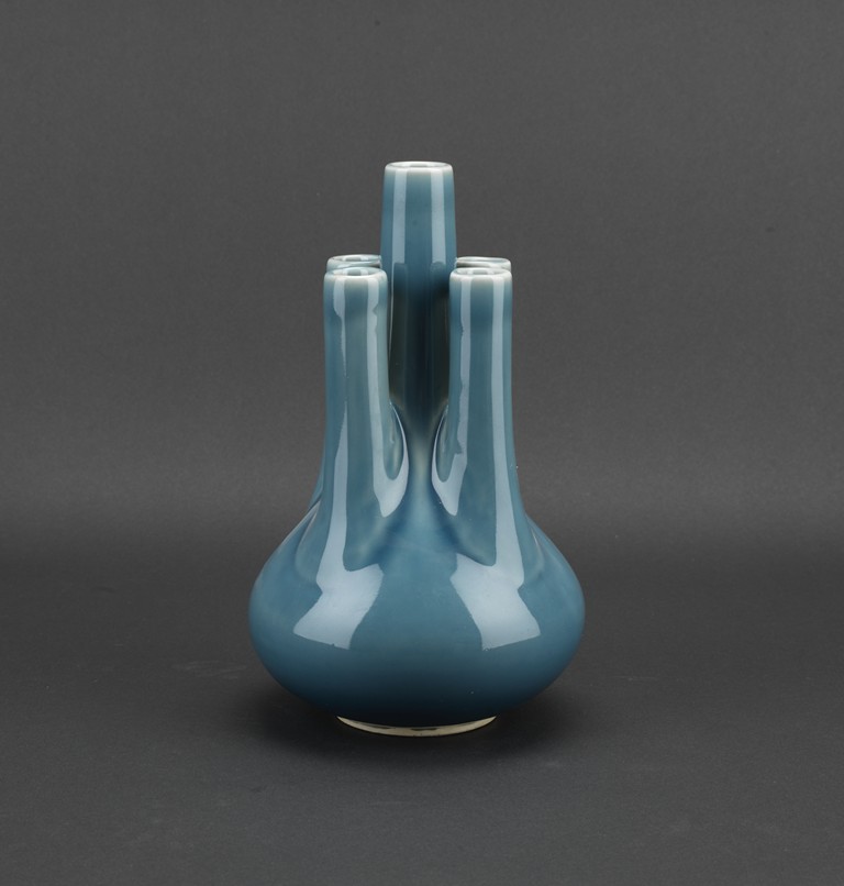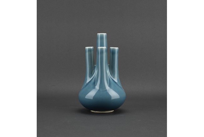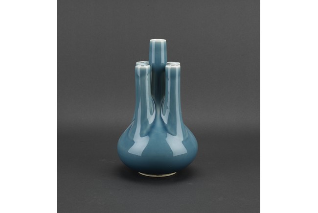 A BLUE GLAZED FIVE NECK VASE 民國 藍釉五口瓶