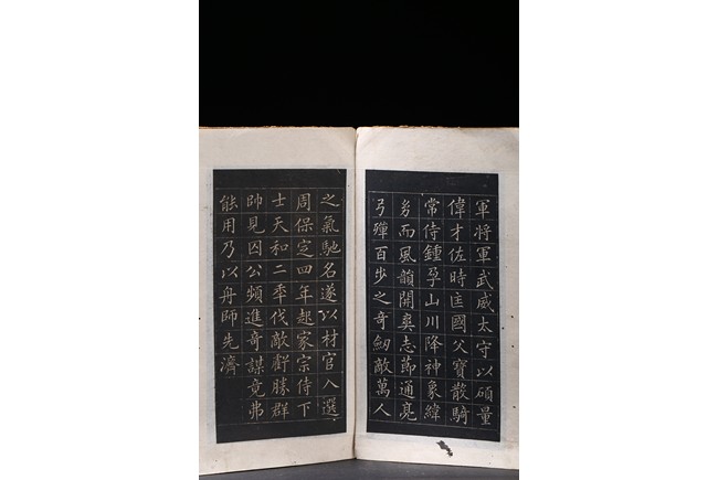 Ink on paper. Rubbing. Regular script calligraphy. Twenty-six leaves.