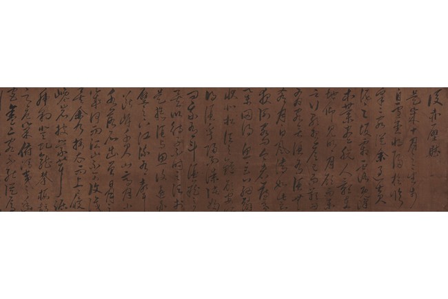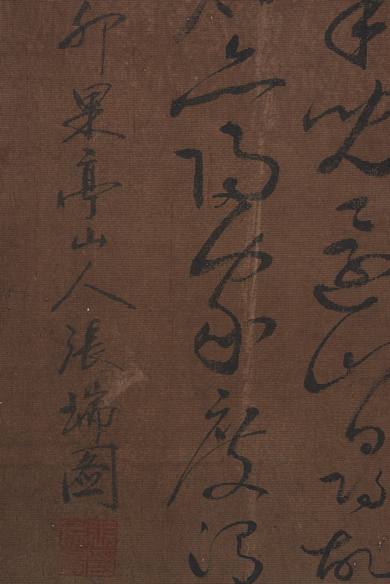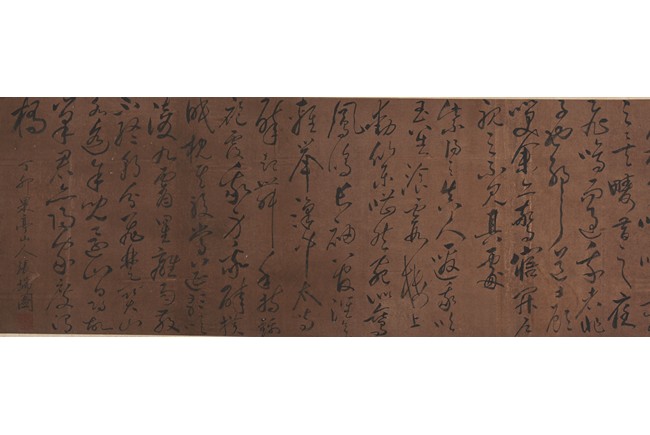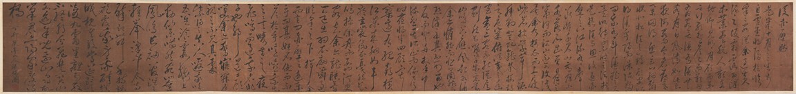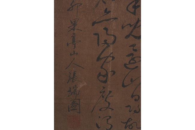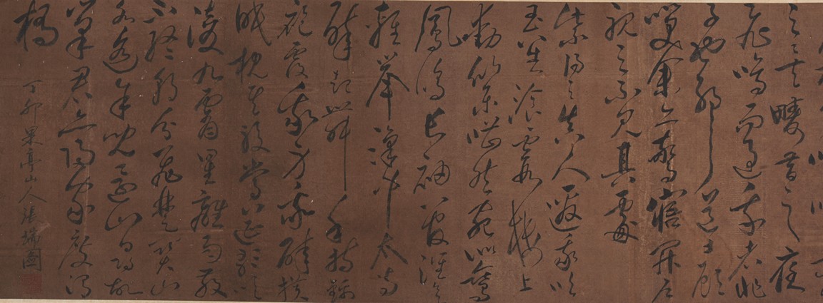 Ink on silk. Running script. Hand scroll. Inscribed and signed Zhang Ruitu, with one seal of the artist. Attributed to Zhang Ruitu.