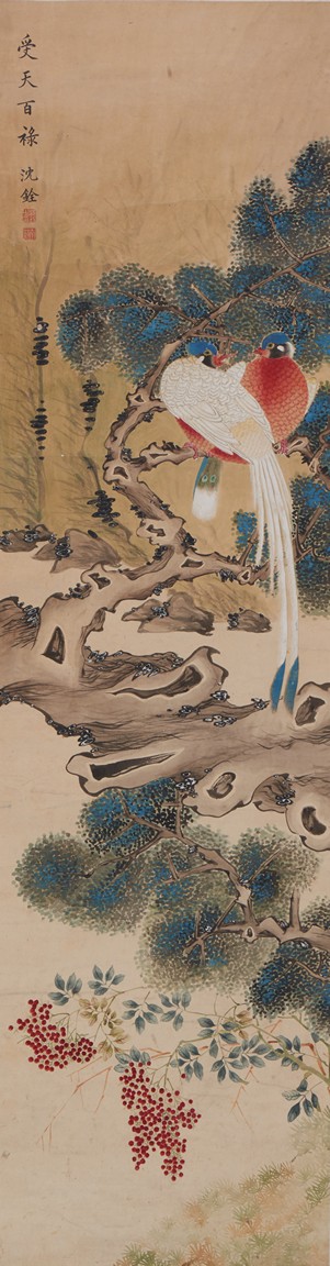 SHEN QUAN: COLOR AND INK ON PAPER 'BIRDS' PAINTING 沈銓 花鳥 立軸