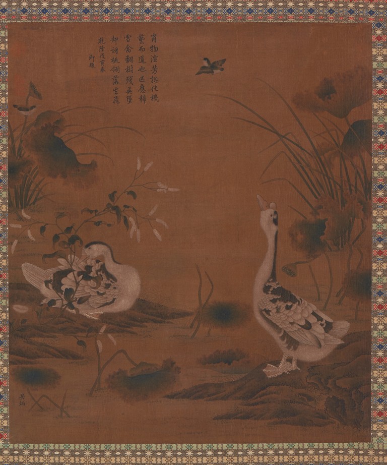 WU BING: COLOR AND INK ON SILK 'DUCKS' PAINTING 吳炳 花鳥 設色絹本 立軸