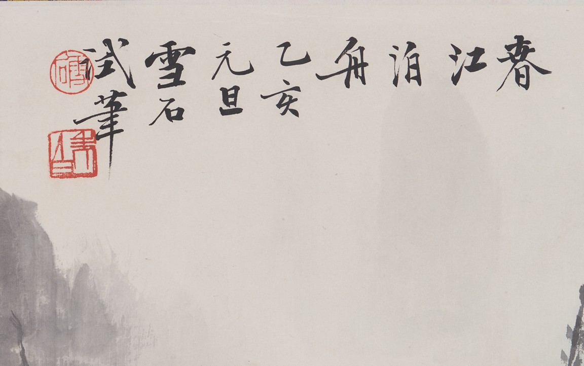 Color and ink on paper. Landscape. Inscribed and signed Xue Shi,with two seals of the artist.