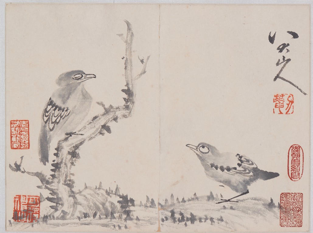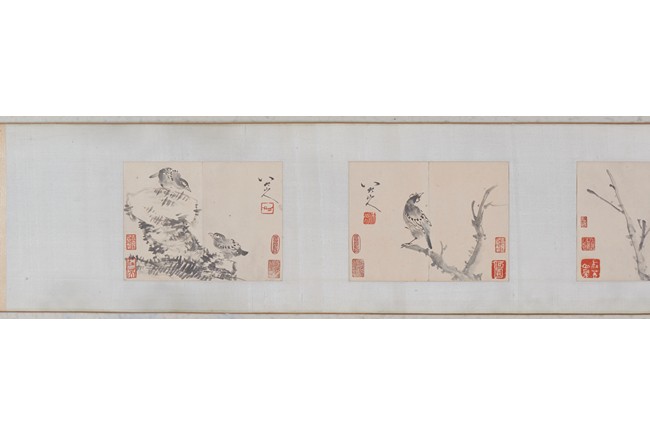 AN INK ON PAPER 'BIRDS' HANDSCROLL 八大山人(款)花鳥 手卷