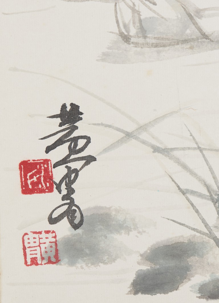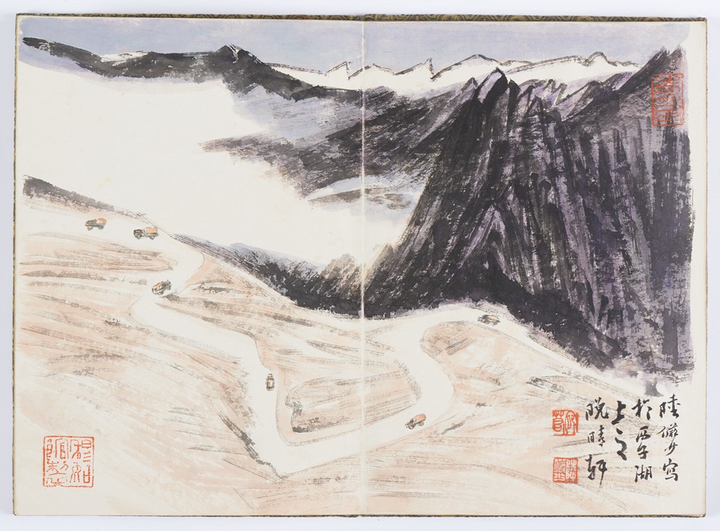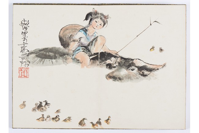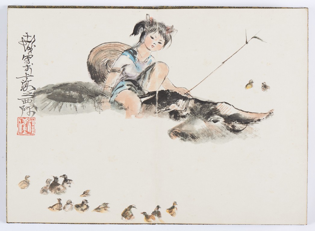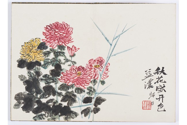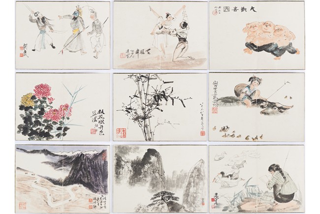 Color and ink on paper. Various subjects. Album of Nine Leaves. Artists include Guan Liang, Huang Yongyu, Lou Shibai, Chen Shifa, Dong Shouping, Lu Yanshao, Ya Ming, Huang Zhou. All signed and with one to two seal marks.