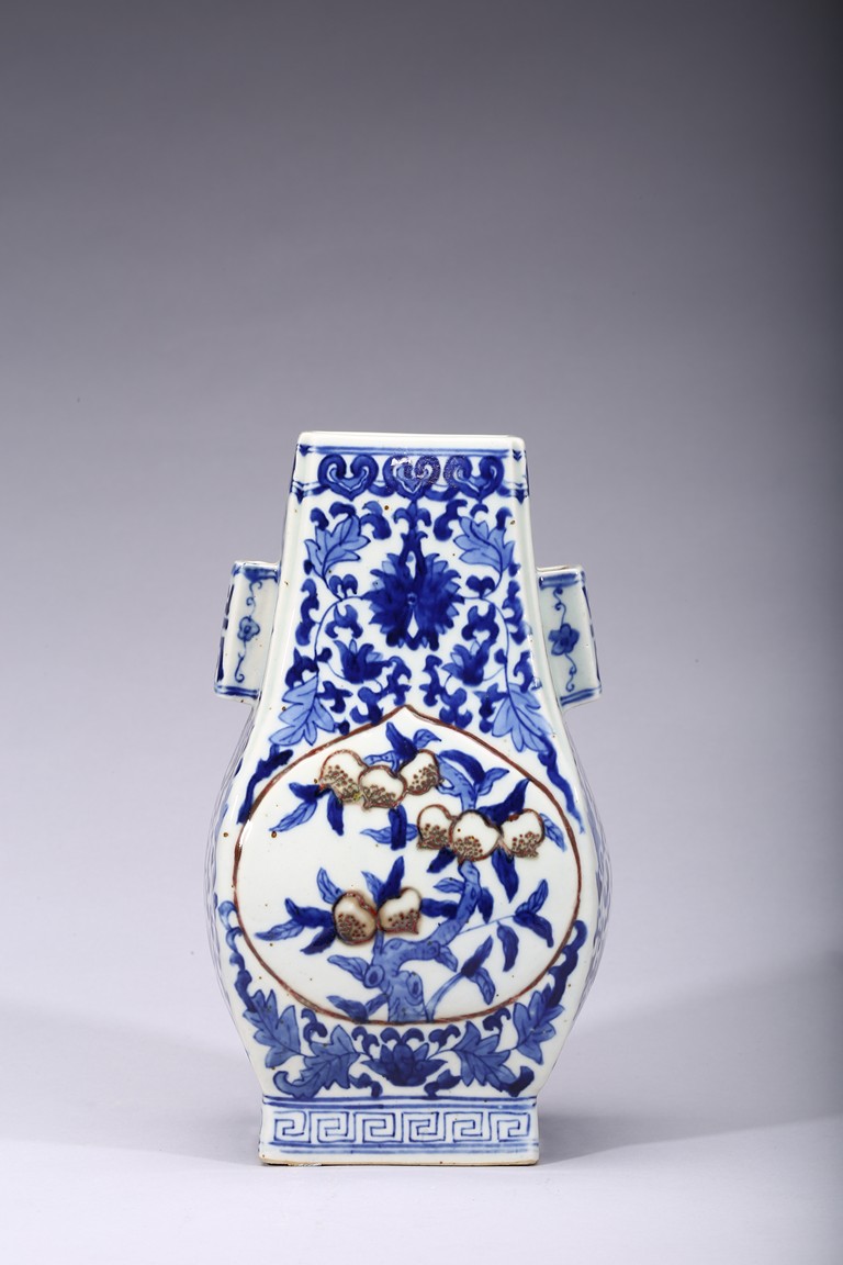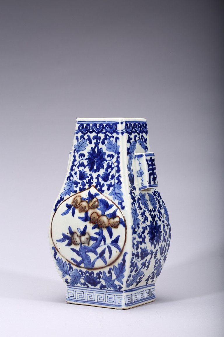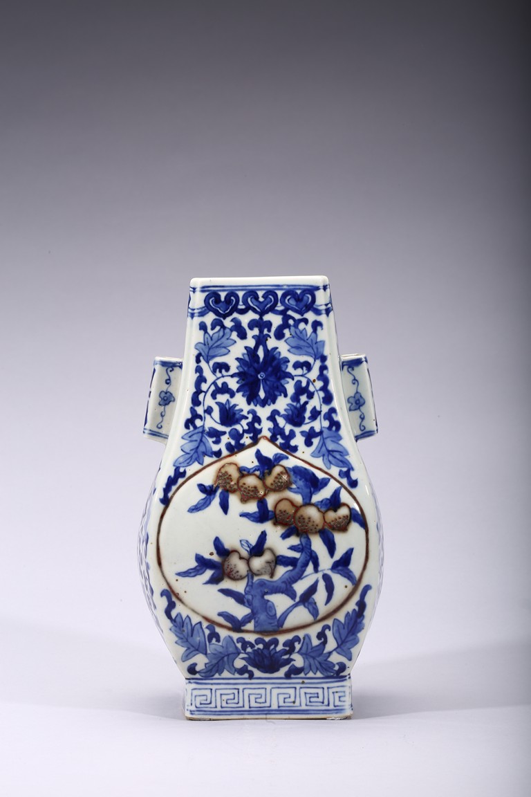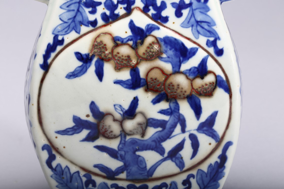 A BLUE AND WHITE 'PEACH' VASE 民國 青花雙耳瓶