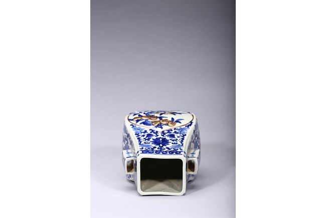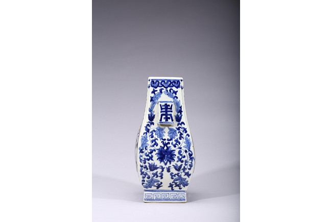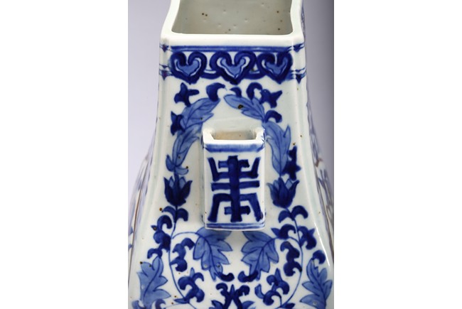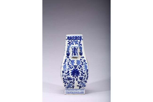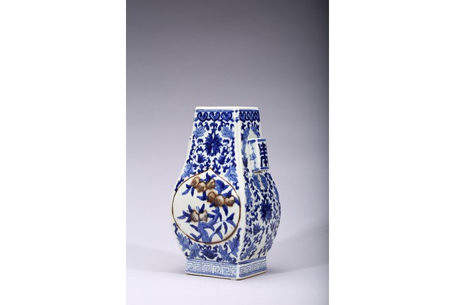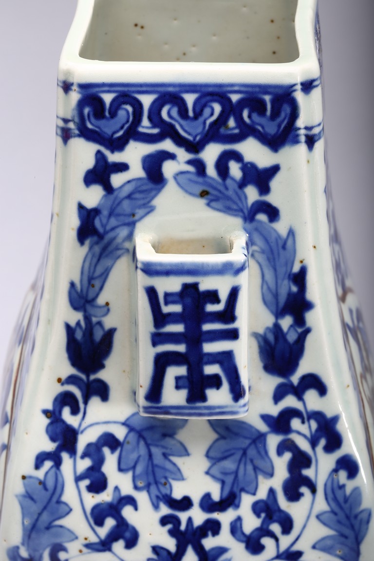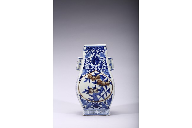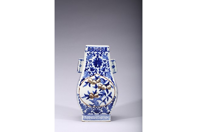 A BLUE AND WHITE 'PEACH' VASE 民國 青花雙耳瓶