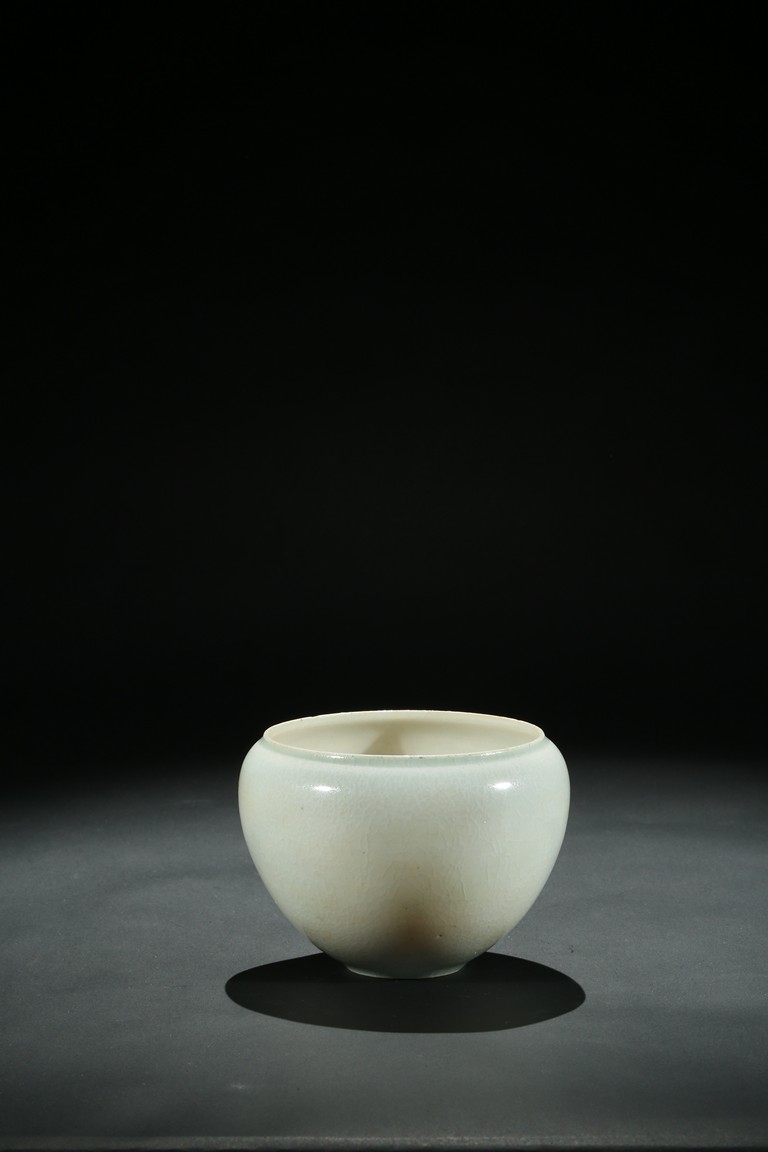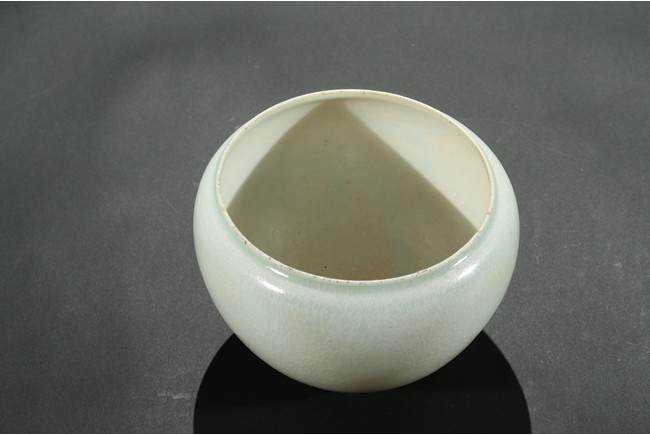 此器呈缽式,唇口,圓鼓腹,平底,口面較寬,整體器型豐腴飽滿。胎體厚薄均勻,內壁施透明釉,釉質光潔瑩潤,外壁施翠青釉,釉面凝厚瑩亮,極見端莊脫俗。此造型源自佛教之缽盂,缽盂又稱應器、應量器,是印度僧侶手托著用來接受布施的法器,也是盛飲食供於佛前的供養之具。中國藏傳佛教對缽盂的使用頗為流行,為修持必備之物。此缽式洗造型端莊大氣,釉色肥美,置於案首,賞心悅目,是極為難得的文房陳設用具,值得典藏。