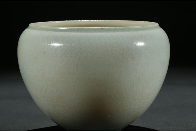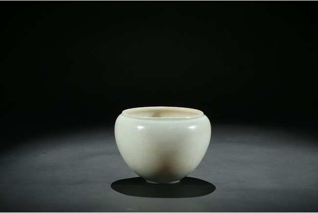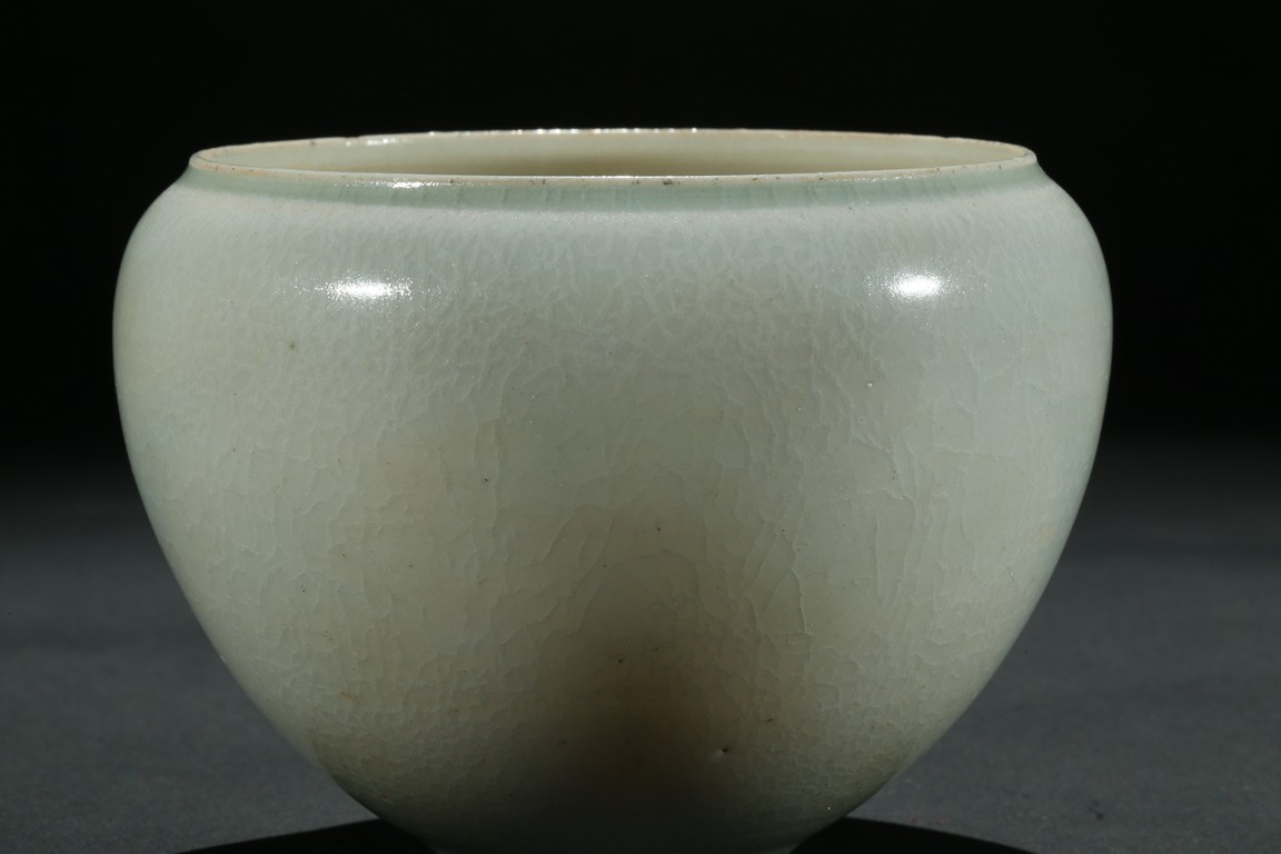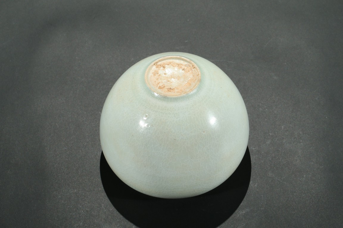 Thinly potted with upright rounded form, overall covered in a consistent pale bluish glaze suffused with attractive and extensive crackles. Southern Song Dynasty period.