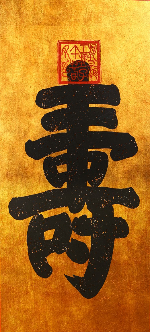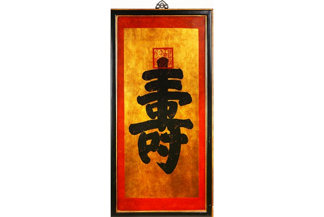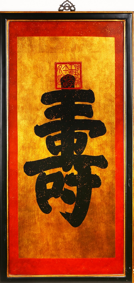 A DECORATIVE 'SHOU' HANGING PANEL 木板壽字