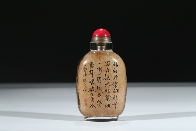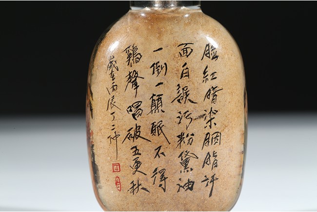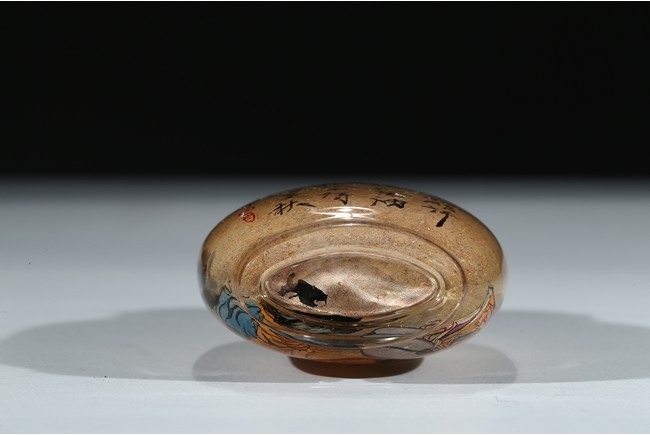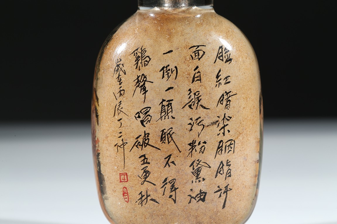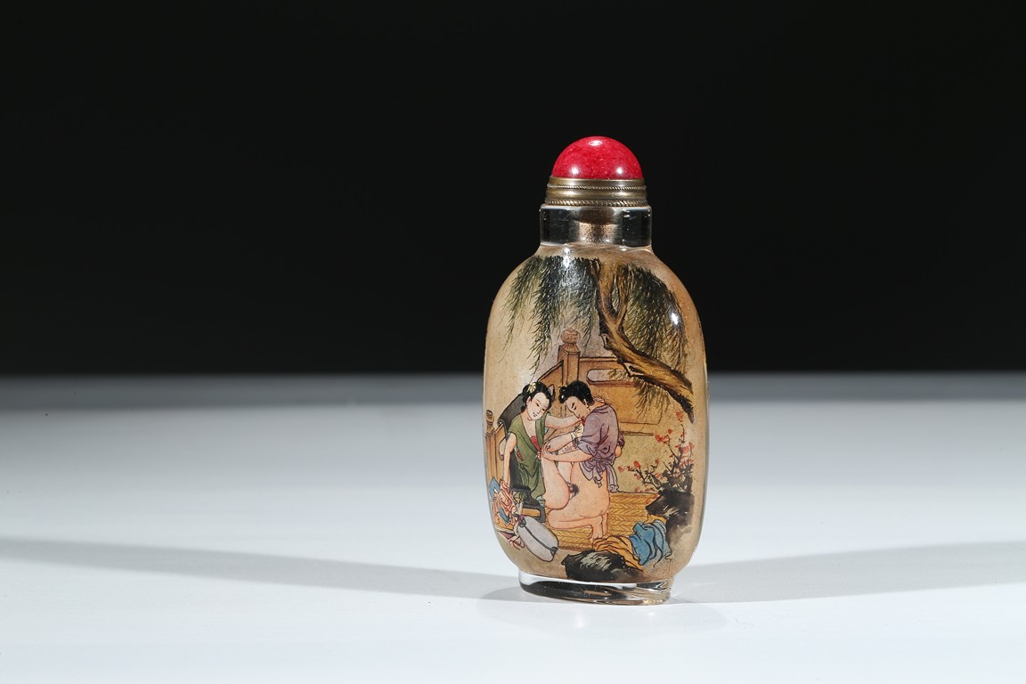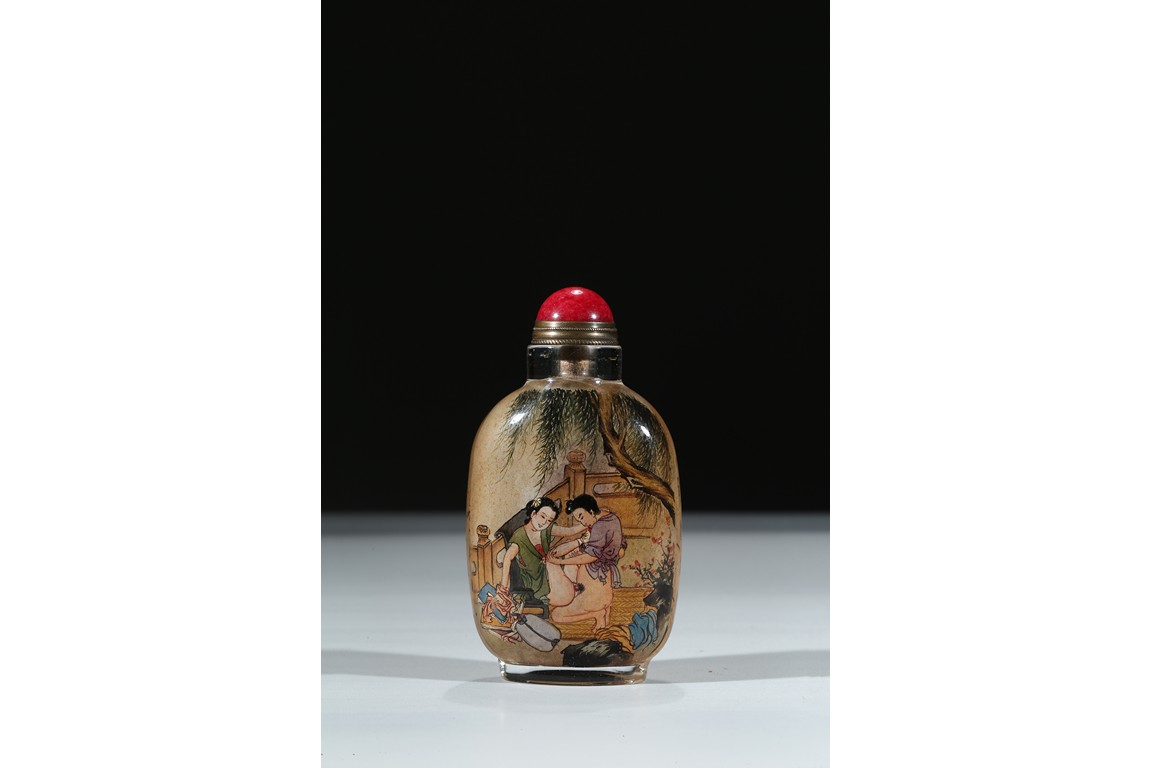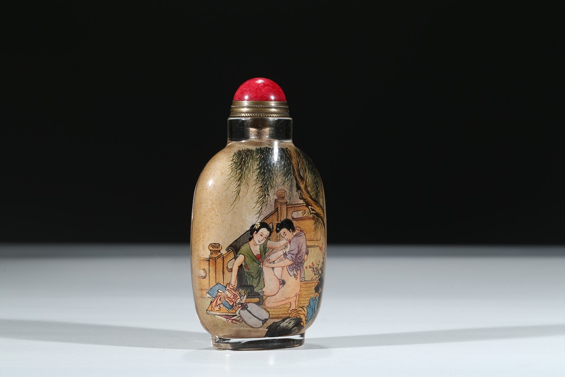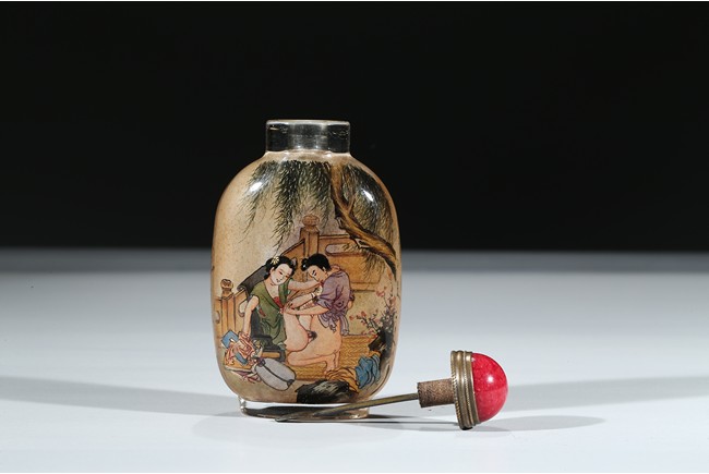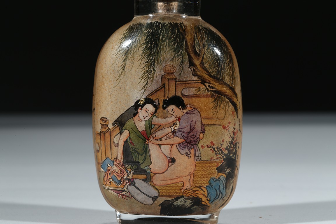 Inside painted with erotic scene to the front body, the reverse with a poem and signed Ding Erzhong. Qing Dynasty period.