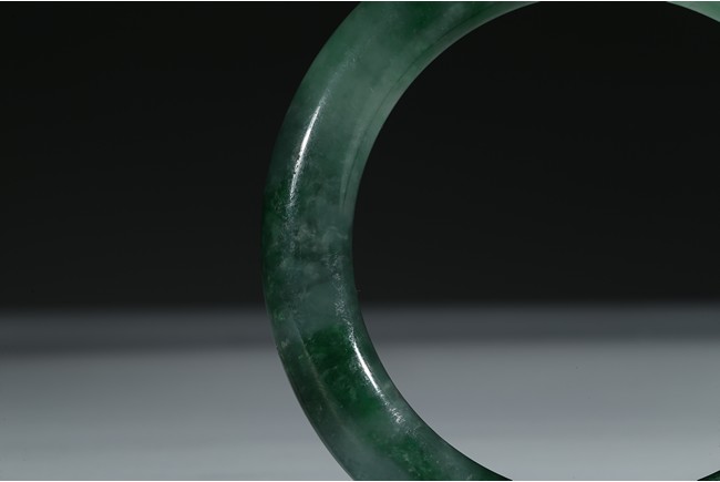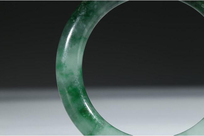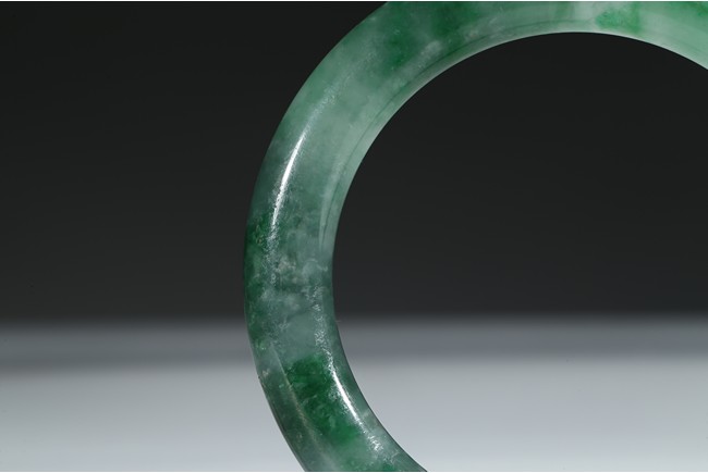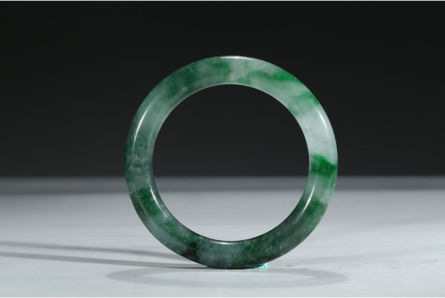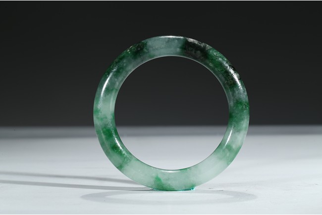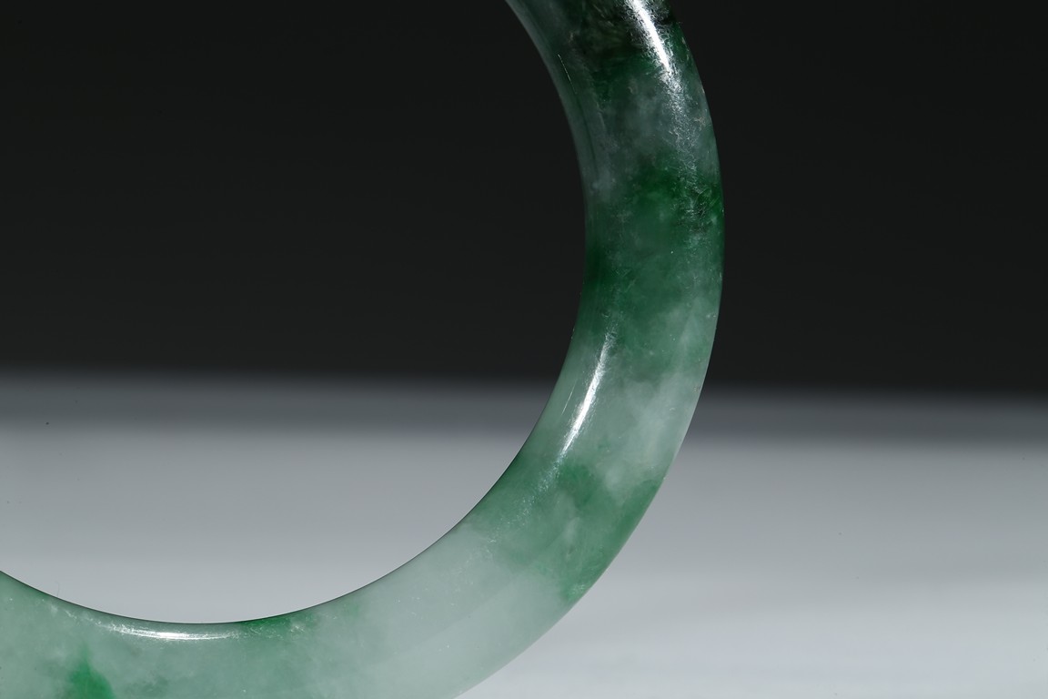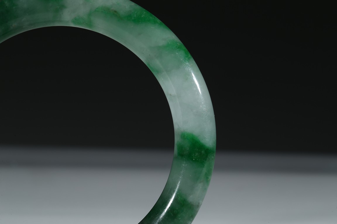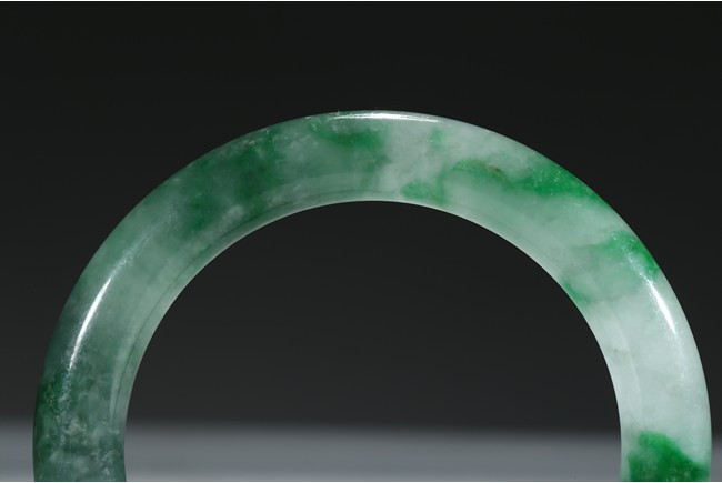 The bangle with translucent mottled green and white tone. Qing Dynasty period.