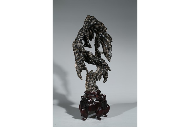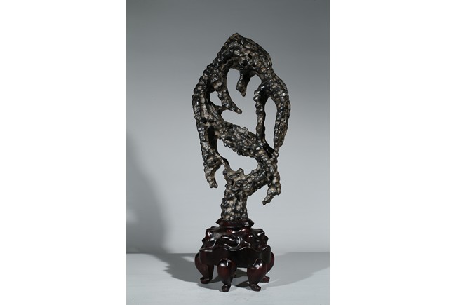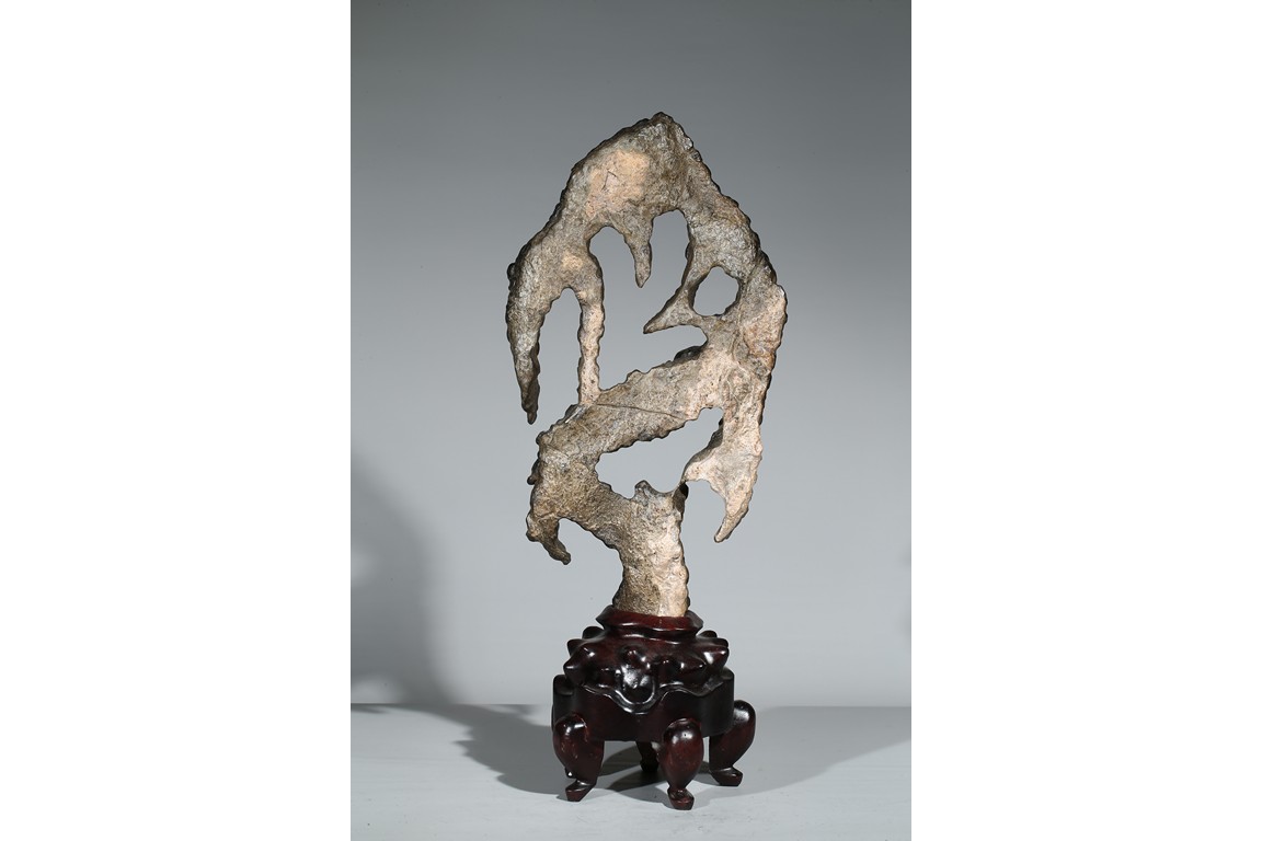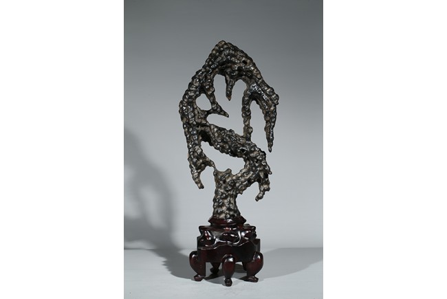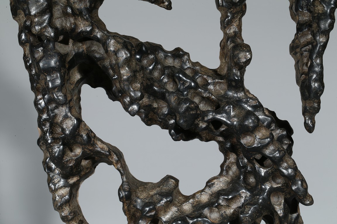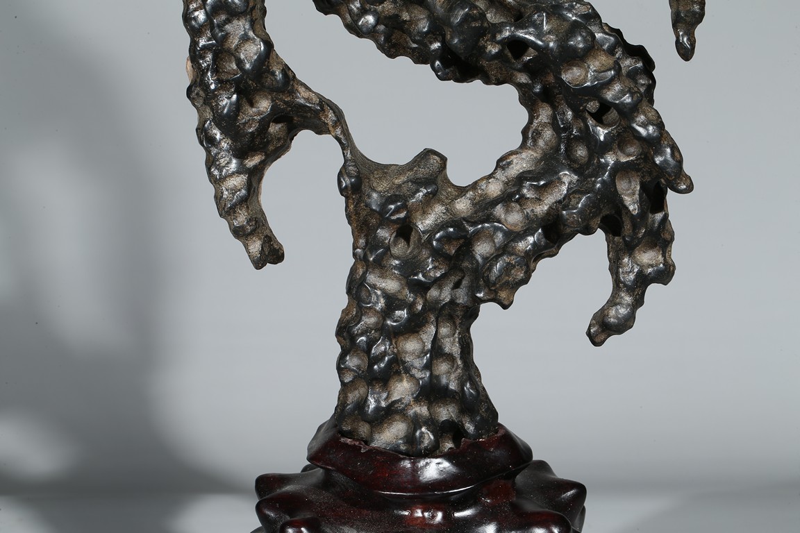 A LINGBI STONE DISPLAY WITH STAND 天然靈璧石擺件