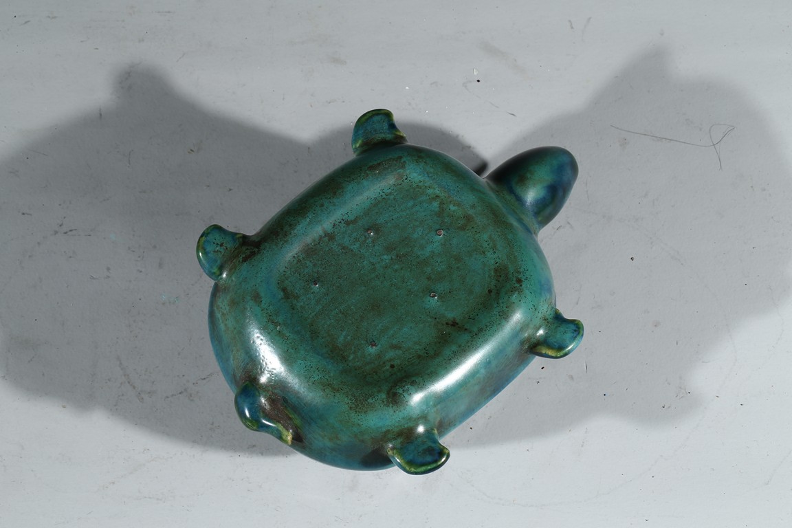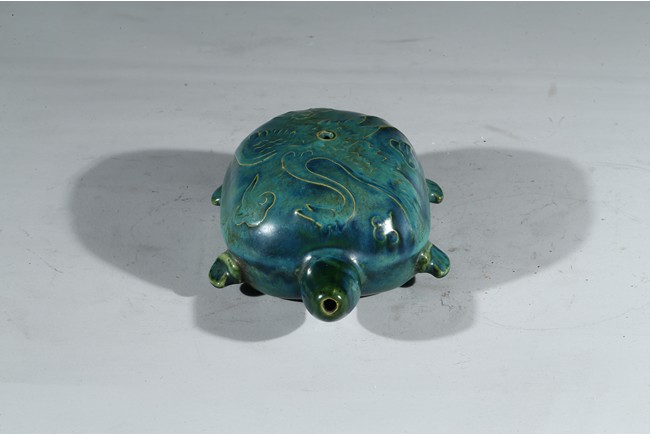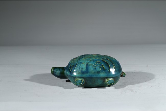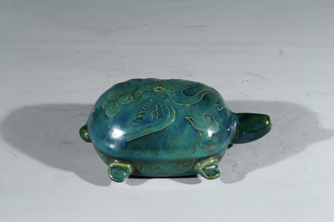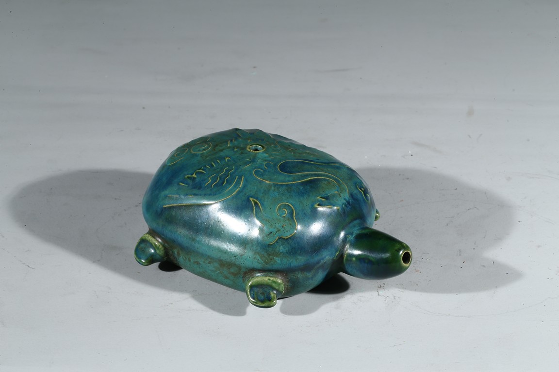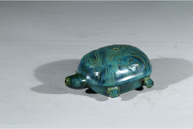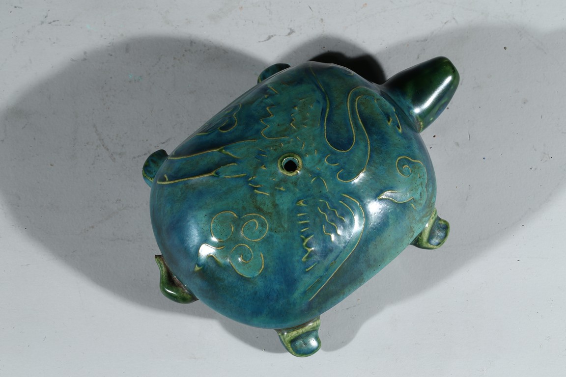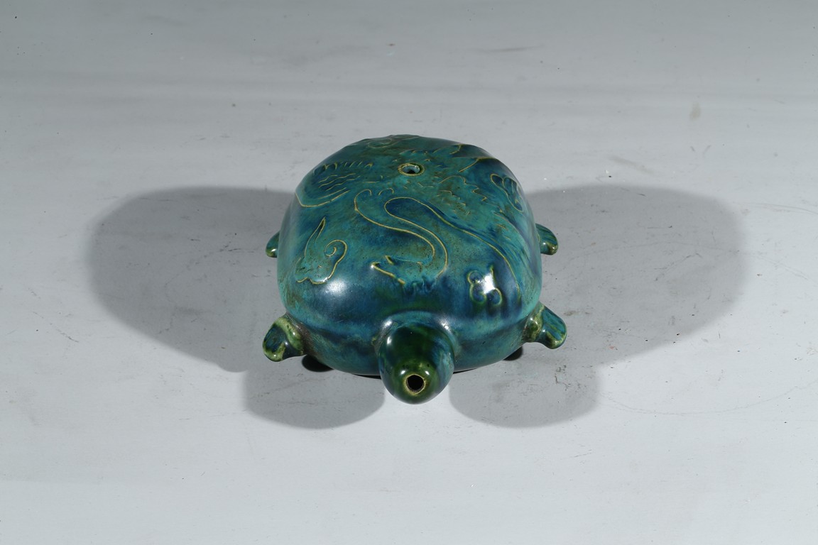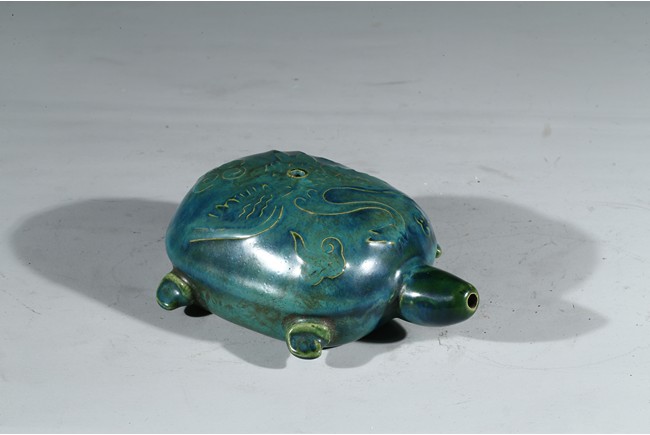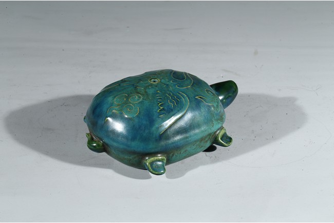 The green glazed turtle shaped waterpot decorated with a flying crane on the back. Song Dynasty period.