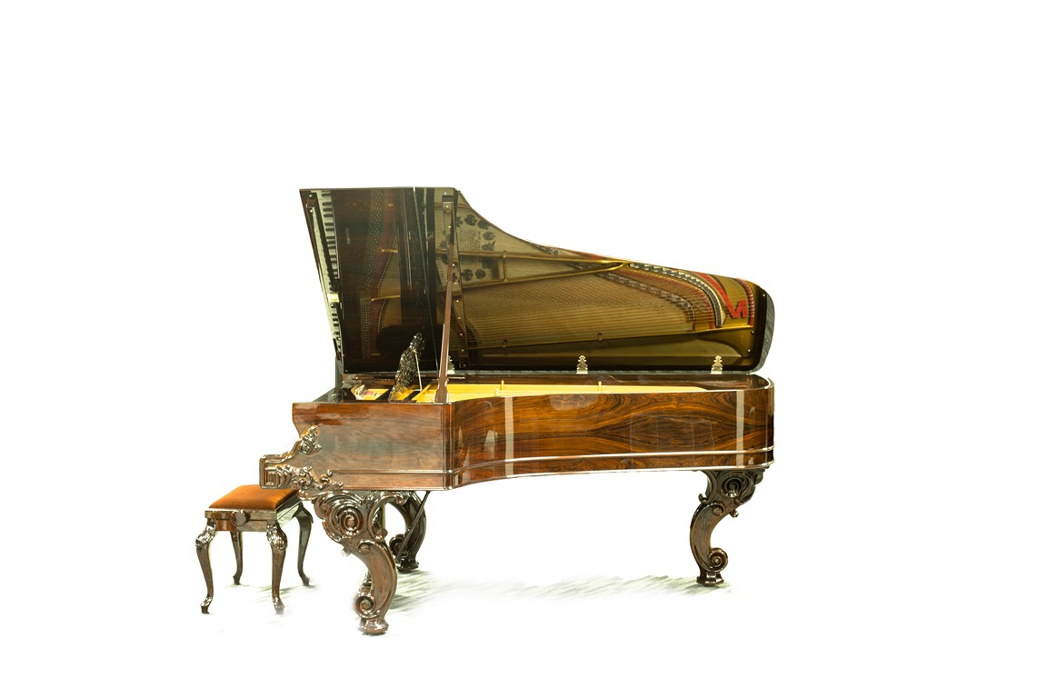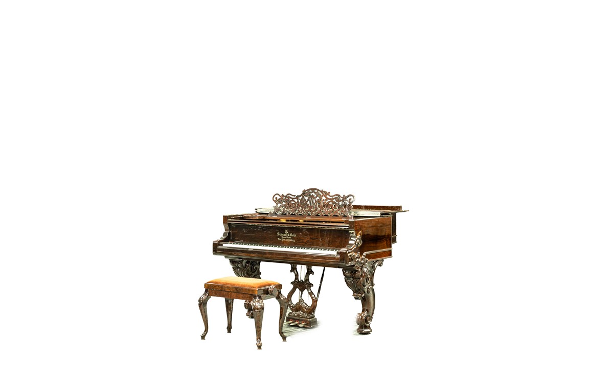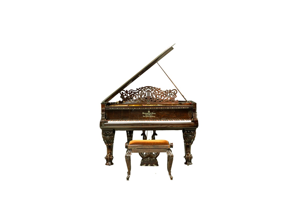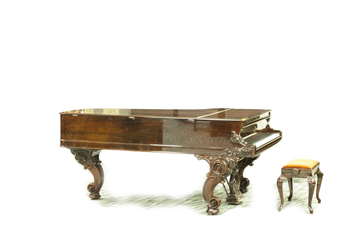 This is a rare Steinway & Sons "Model C" made of beautiful Rosewood in the Empire Revival Victorian style. The instrument features beautifully turned legs with carved music rack and pedal lyre. This lovely piano has an overall formal and elegant appearance. The Steinway Model "C" was once one of the most popular and desirable models in the Steinway line. The Model C, also known as "Style 3" on earlier instruments, was the second largest Concert Grand piano Steinway produced during the late 19th and early 20th Century. It was known for its incredible power and volume and was widely used on the concert stages of its day. The Model "C" was discontinued in 1936 in favor of the more popular and slightly smaller Model B Semi-Concert Grand. Today, the Model C is one of the most desirable instruments ever built.