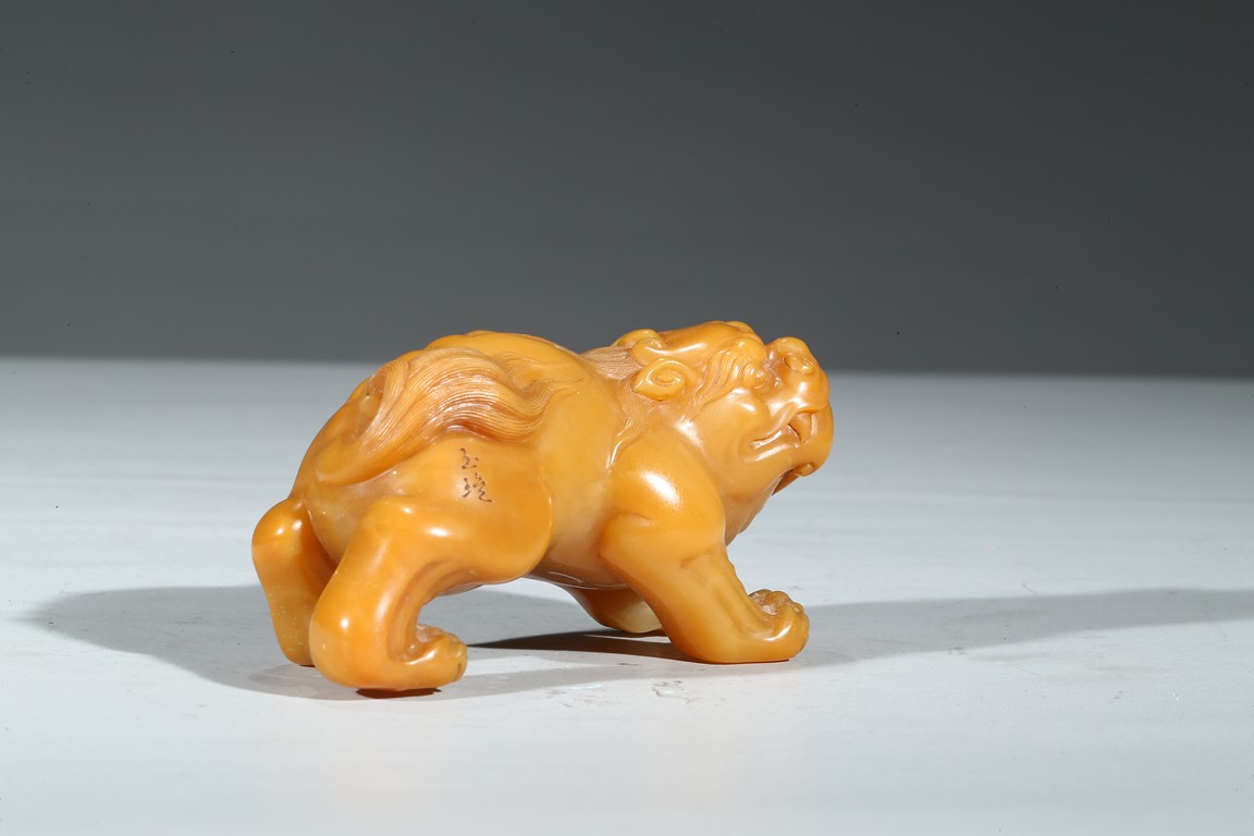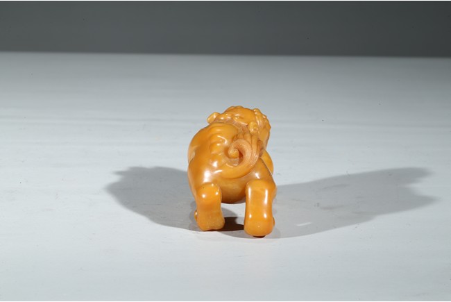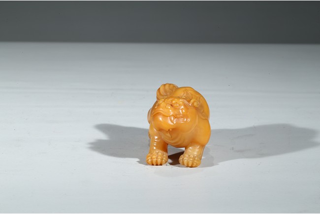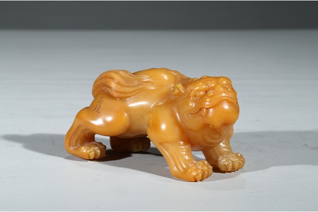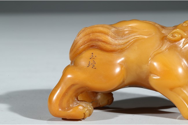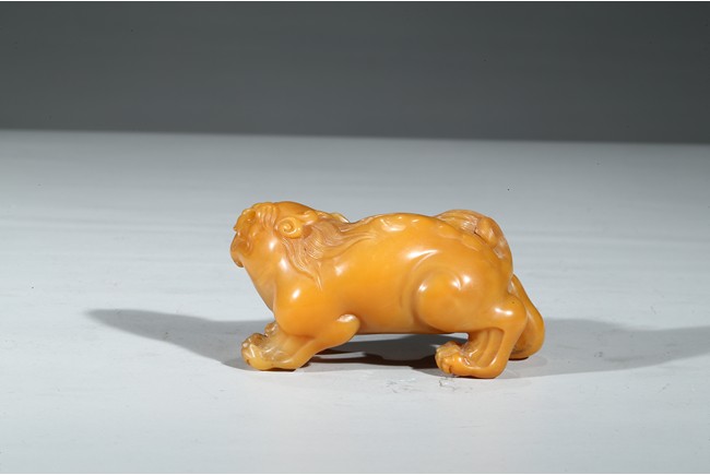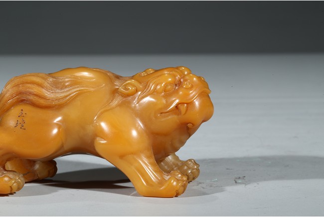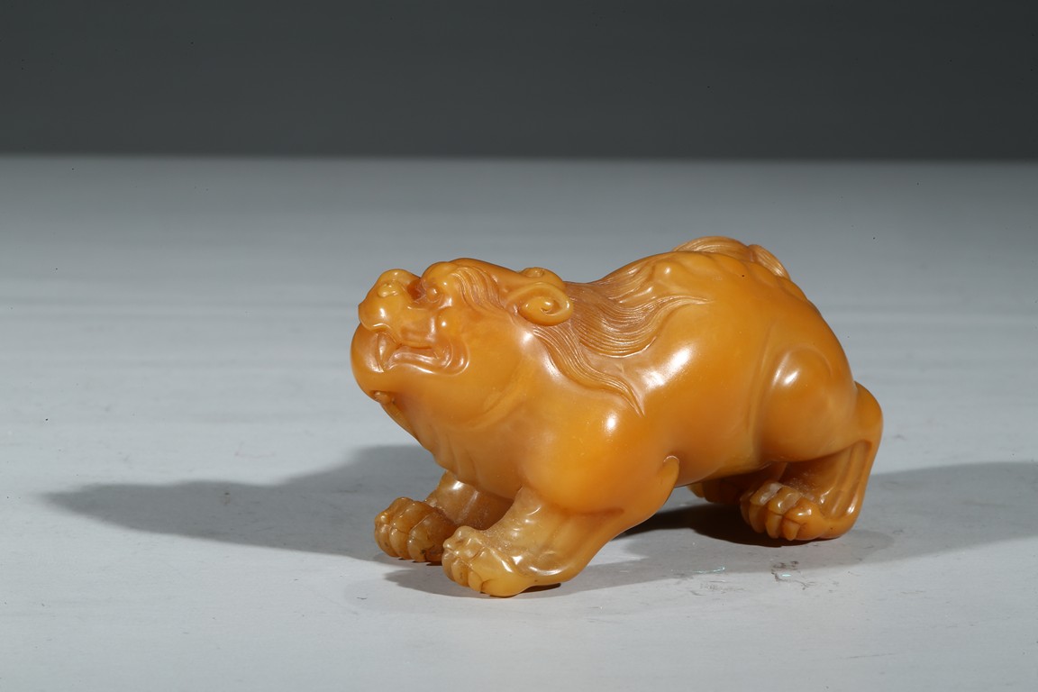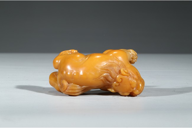 此田黃神獸擺件雕工一流,所雕神獸神態熠熠,氣勢兇猛,是鎮宅的吉祥之寶。