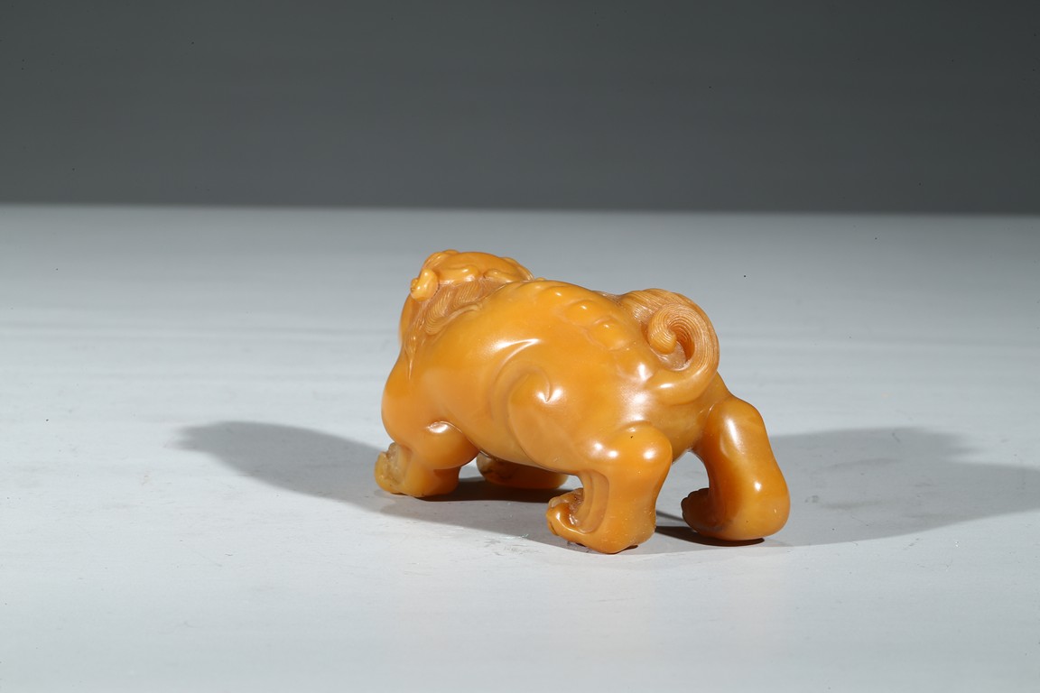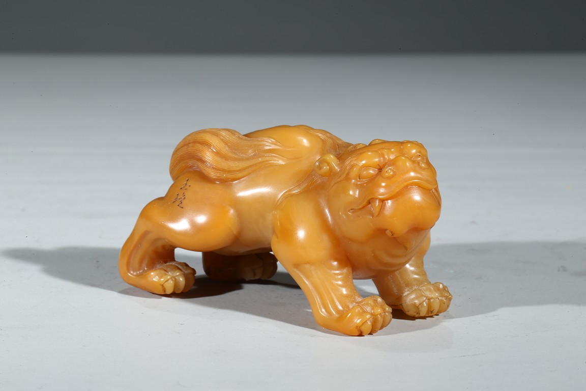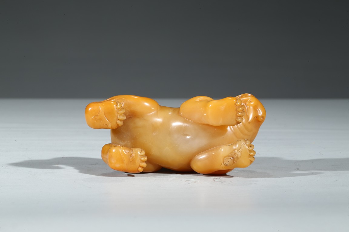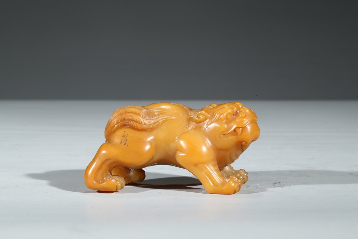 此田黃神獸擺件雕工一流,所雕神獸神態熠熠,氣勢兇猛,是鎮宅的吉祥之寶。