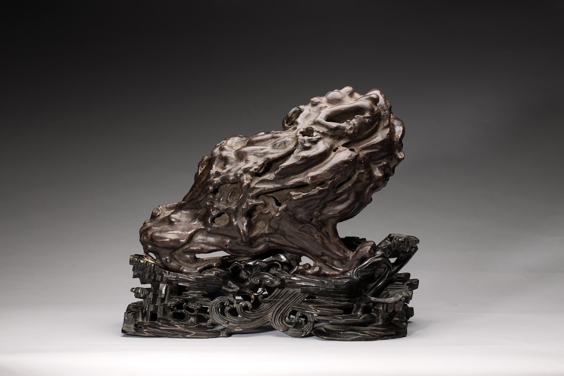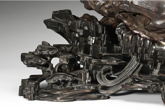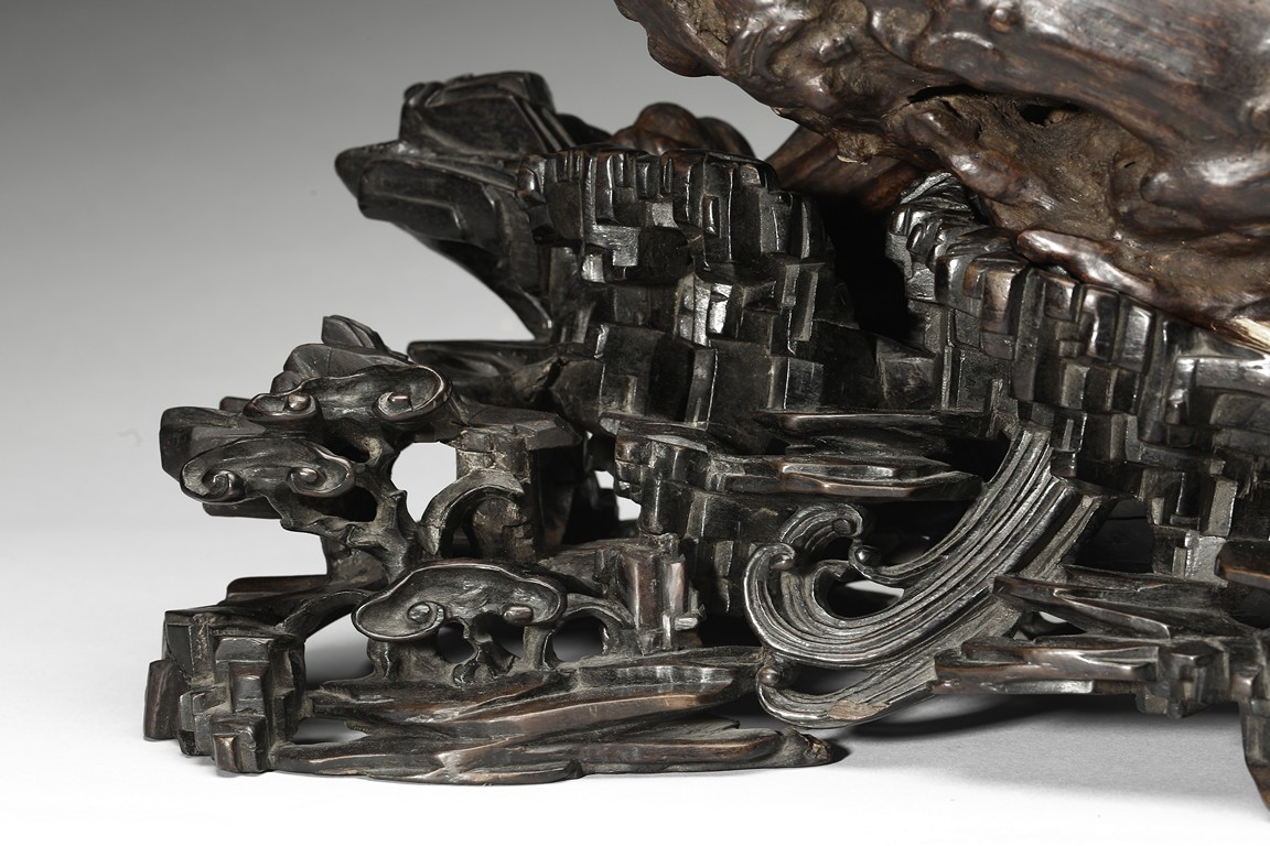 Compare to a similarly sized aloeswood qilin carving, sold in Christie's Hong Kong in May 2018 for HKD 4,660,000, Lot 2917 沉香自古以來就是非常名貴的材料,亦是工 藝品最上乘的原材料。明、清兩代,宮廷皇室皆崇尚用此木製成各類文房器物,工藝精細,與犀角製作相同。由於沉香珍貴且多朽木細幹,用之雕刻,少有大材。因此在拍賣市場上一旦有沉香木製作的大件物品出現,往往會有令人驚訝的表現。可參考一類似大小沉香巧雕麒麟擺件,香港佳士得, 2018年5月, 拍品號2917, 成交價HKD 4,660,000