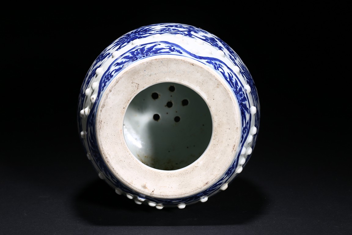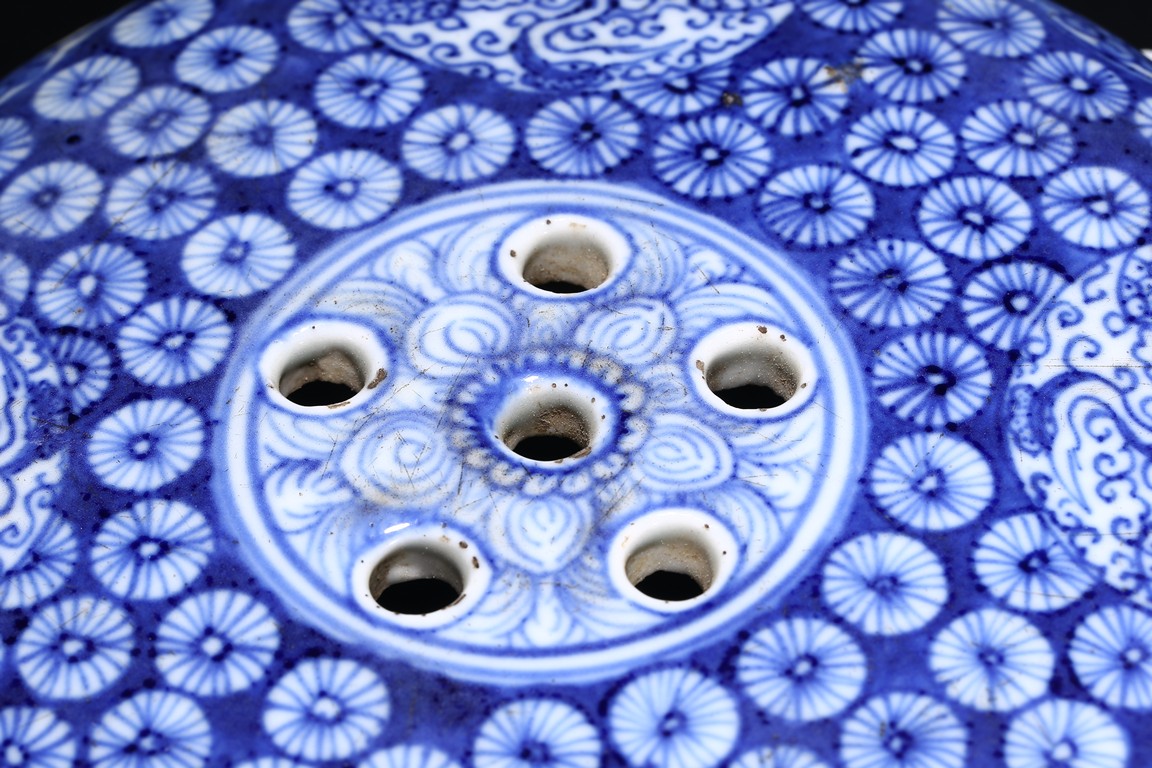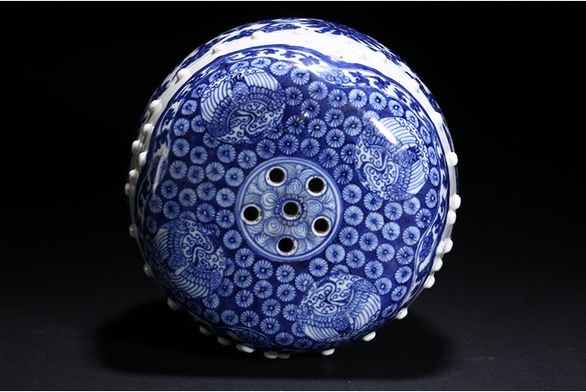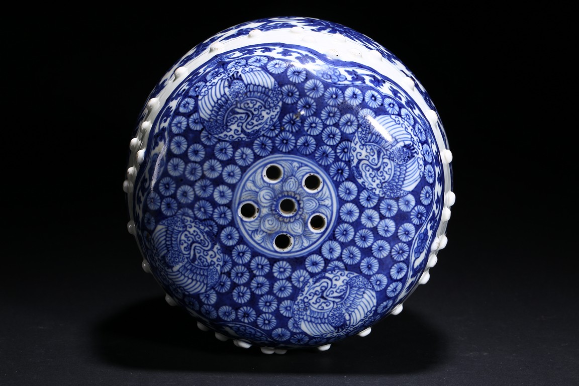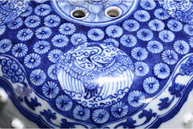 A SMALL BLUE AND WHITE STOOL 十七世紀 青花纏枝蓮紋文房小古墩