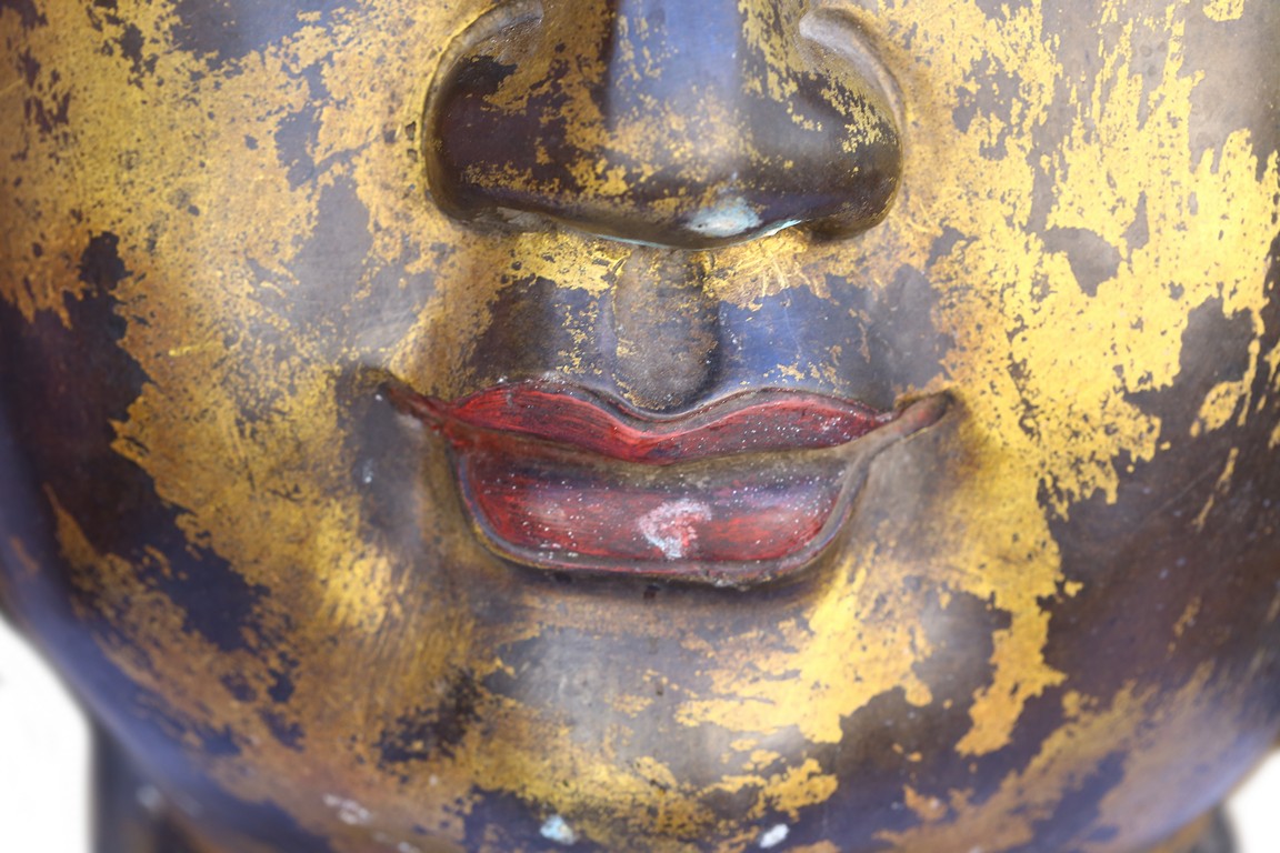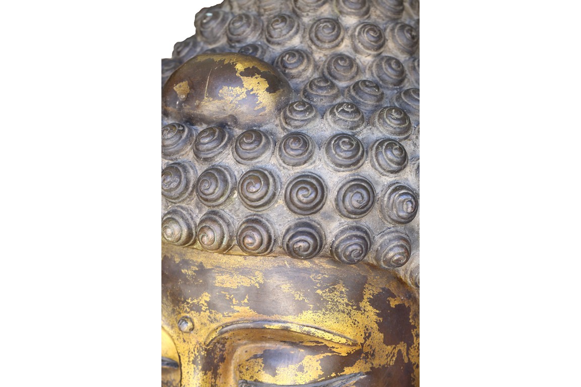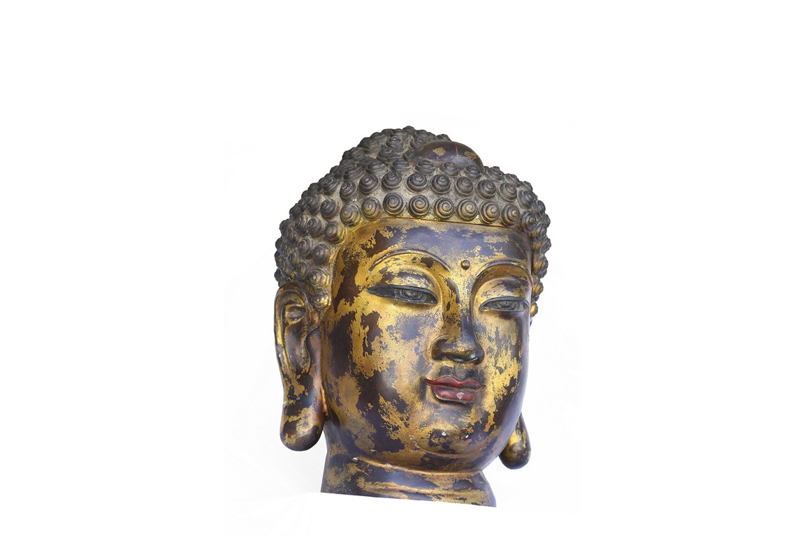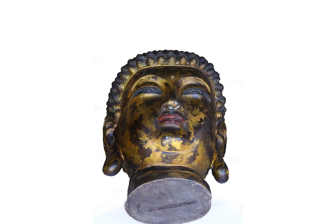 此佛頭體積宏大,雕工精美細緻,面部慈祥莊嚴,表面留存的顏色可見當年華光異彩的景象。此等體積的銅鎏金佛頭在博物館藏及各大拍賣歷史中極為少見。來源: 聖地亞哥著名藏家陳昌師先生提供