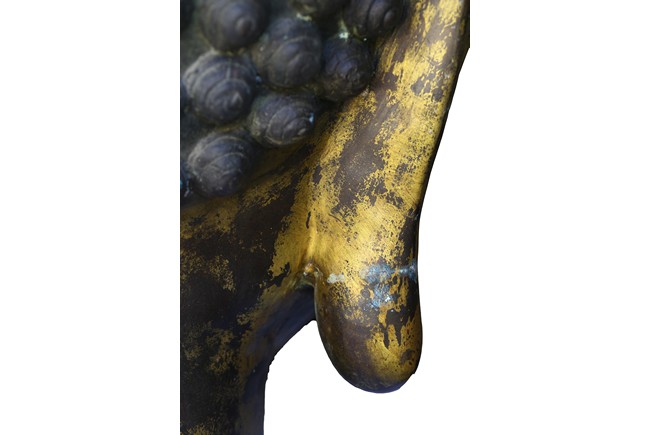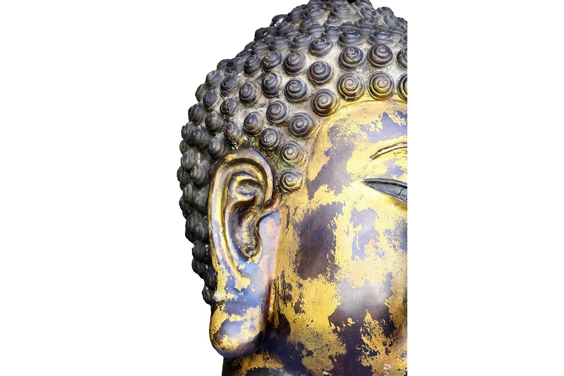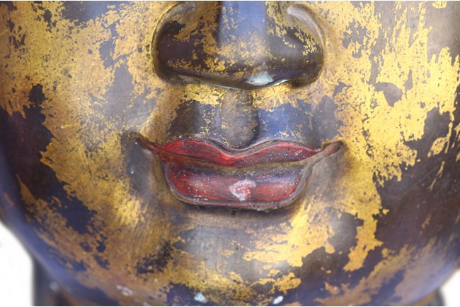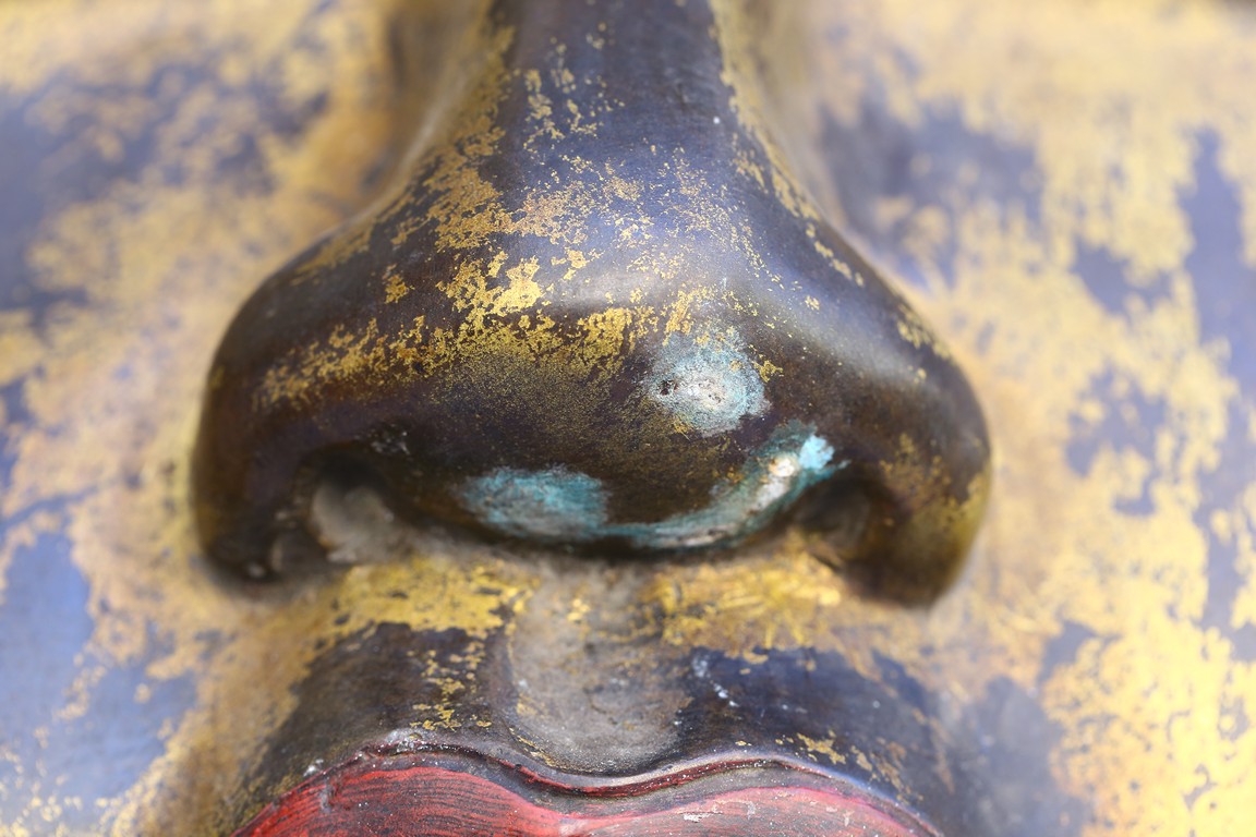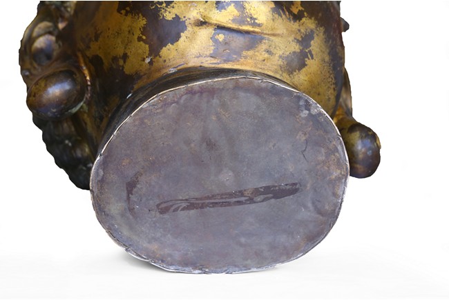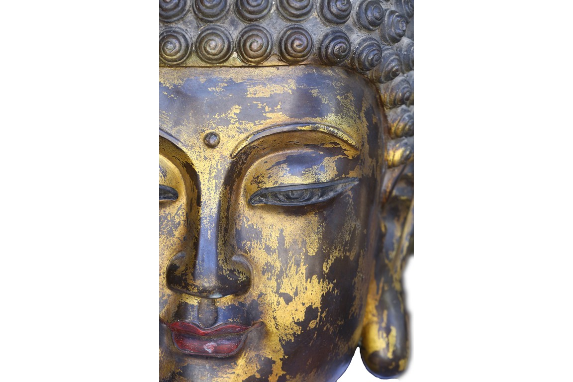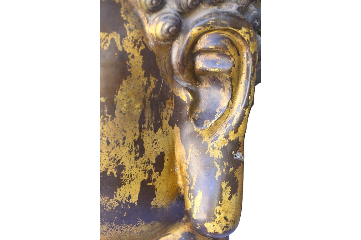 此佛頭體積宏大,雕工精美細緻,面部慈祥莊嚴,表面留存的顏色可見當年華光異彩的景象。此等體積的銅鎏金佛頭在博物館藏及各大拍賣歷史中極為少見。來源: 聖地亞哥著名藏家陳昌師先生提供