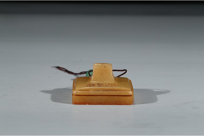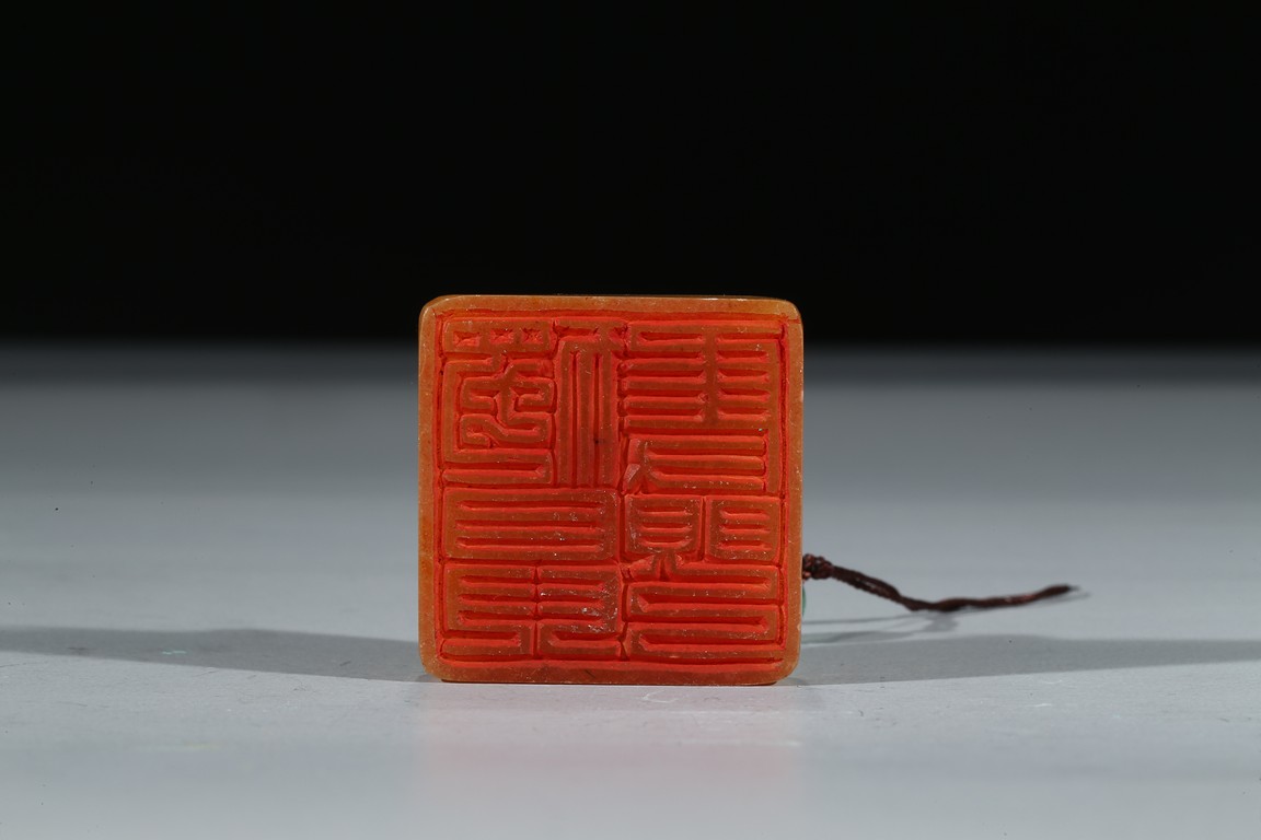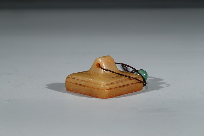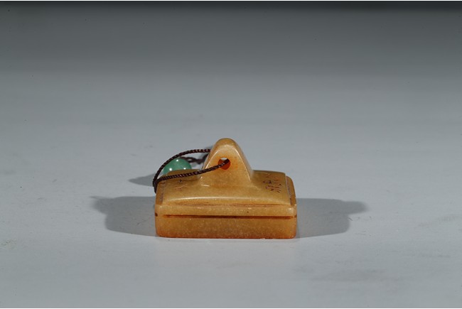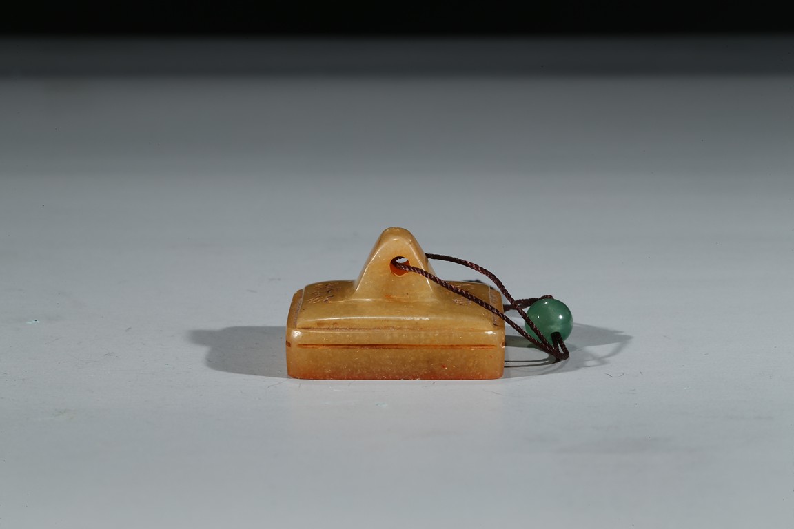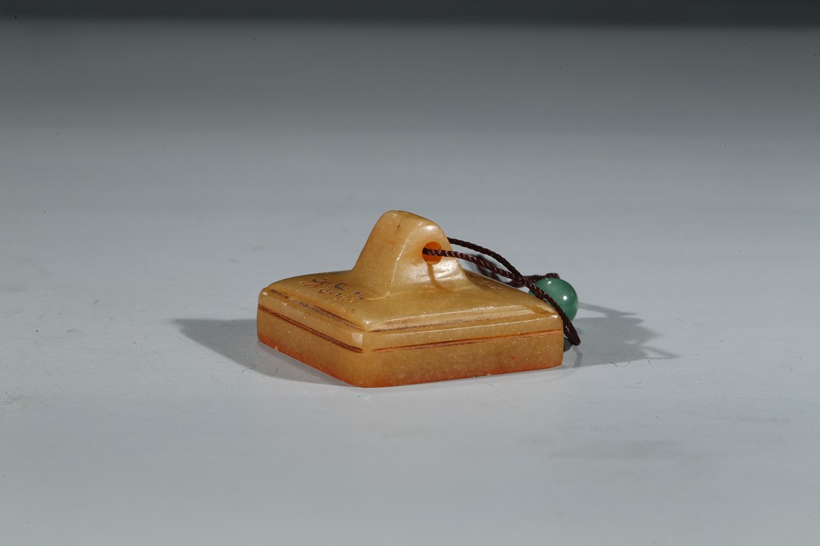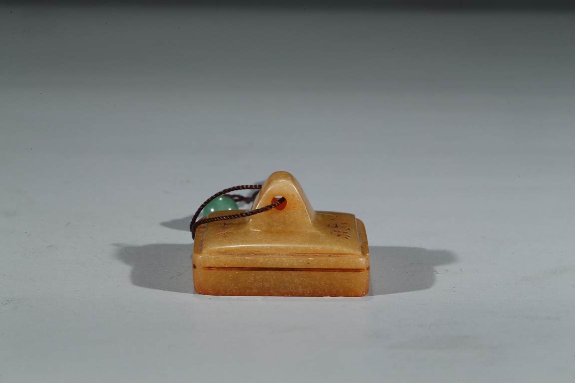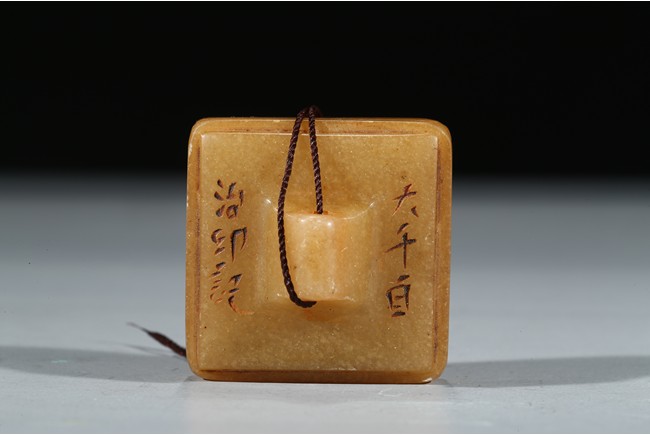 A YELLOW JADE SQUARE SEAL 黃玉雕 大千自製方印