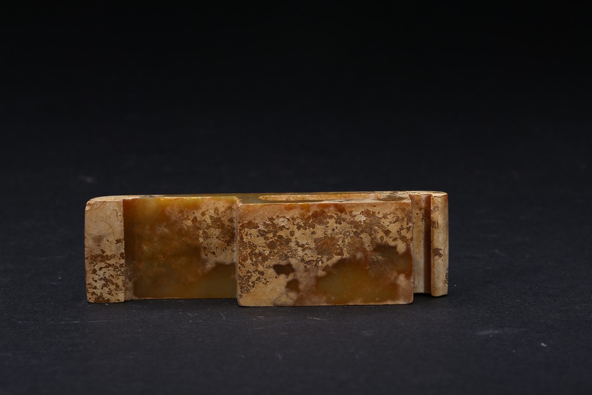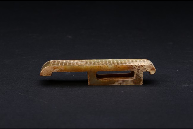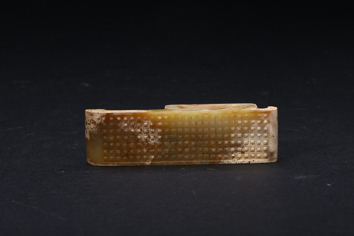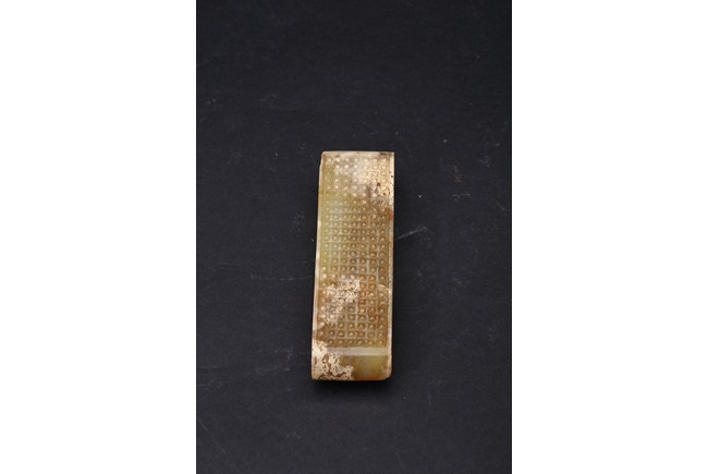A CARVED JADE SWORD SLIDE 西周 玉雕穀紋劍璲
