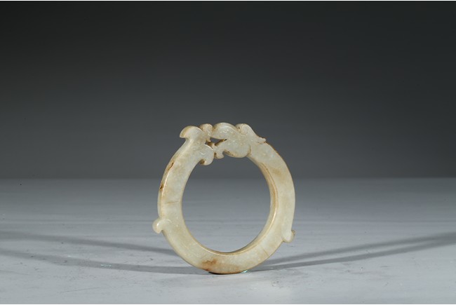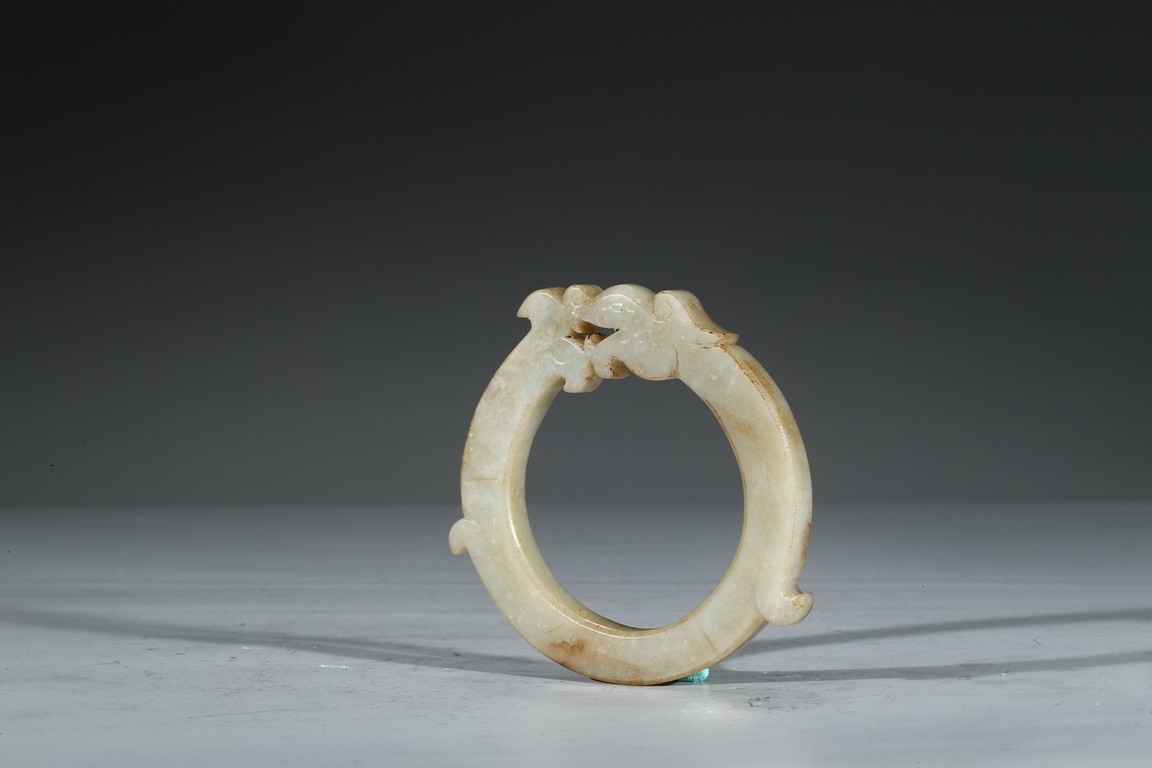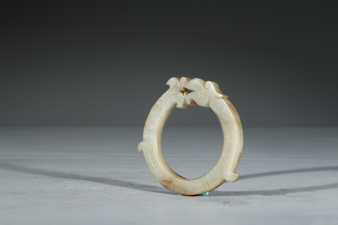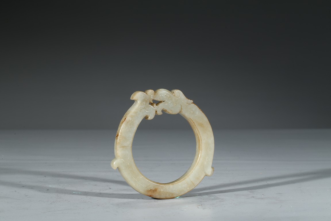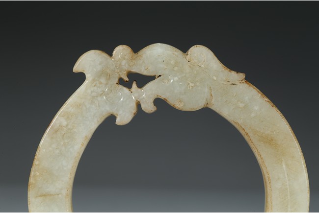 Carved with a coiled dragon with its head against the tail forming a closed circle. Han Dynasty period.