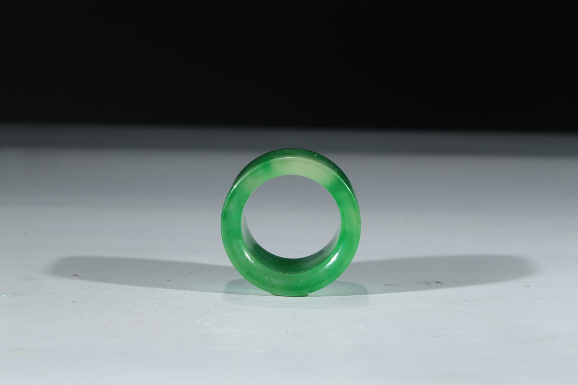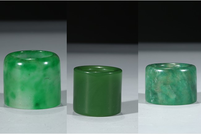 This set includes a green jade archer's ring and two made of jadeite. Qing Dynasty period.
