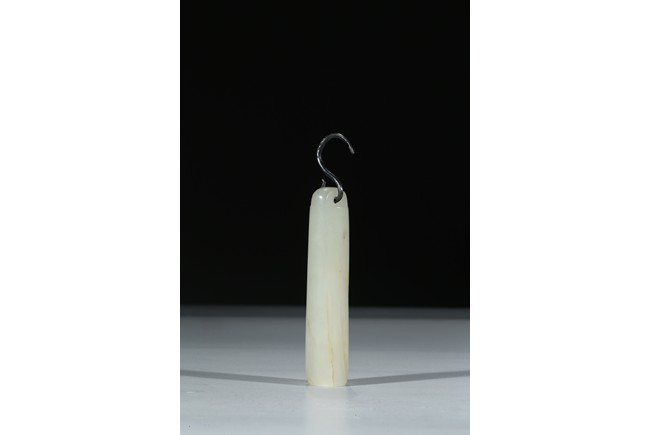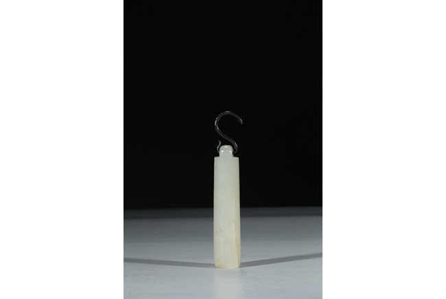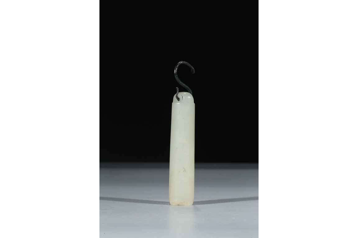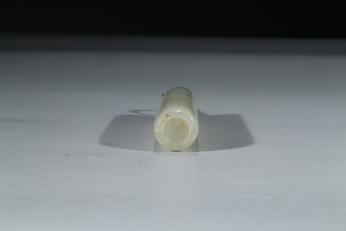 The white jade cylinder carved to the top with an arched loop. Qing Dynasty period.