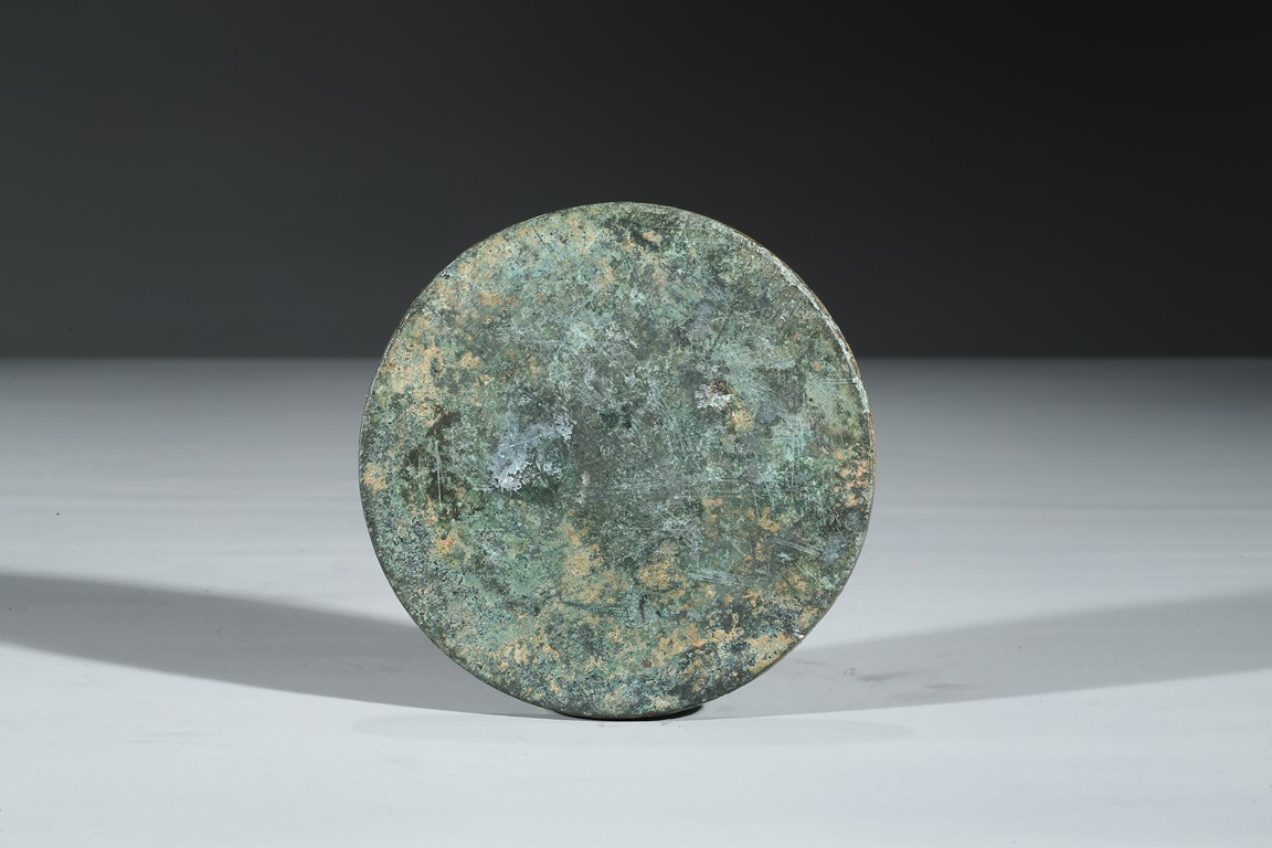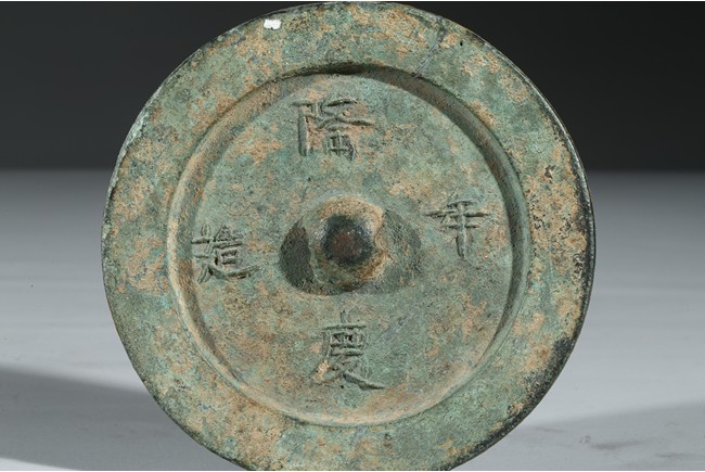 A round mirror with four Chinese characters meaning 'made in Longqing period'. Ming Dynasty period.
