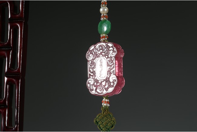 Each side carved with a panel with the character zhai jie, surrounded by bat, ruyi heads, peaches, and buddhist symbol; the reverse with two Manchu script. Qing Dynasty period.