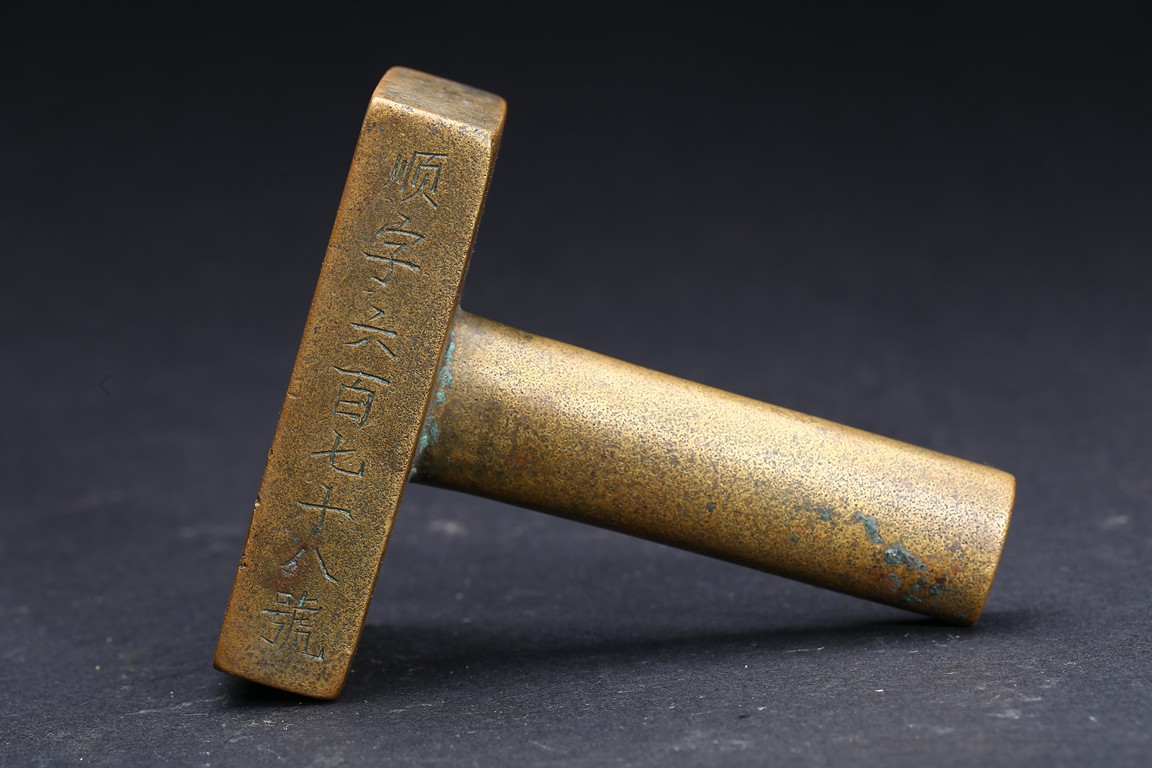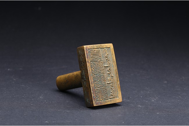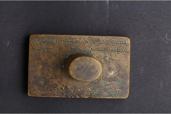 Of rectangular section and inscribed with Manchurian and chinese inscriptions. Mark and period of Shunzhi. Qing Dynasty period.