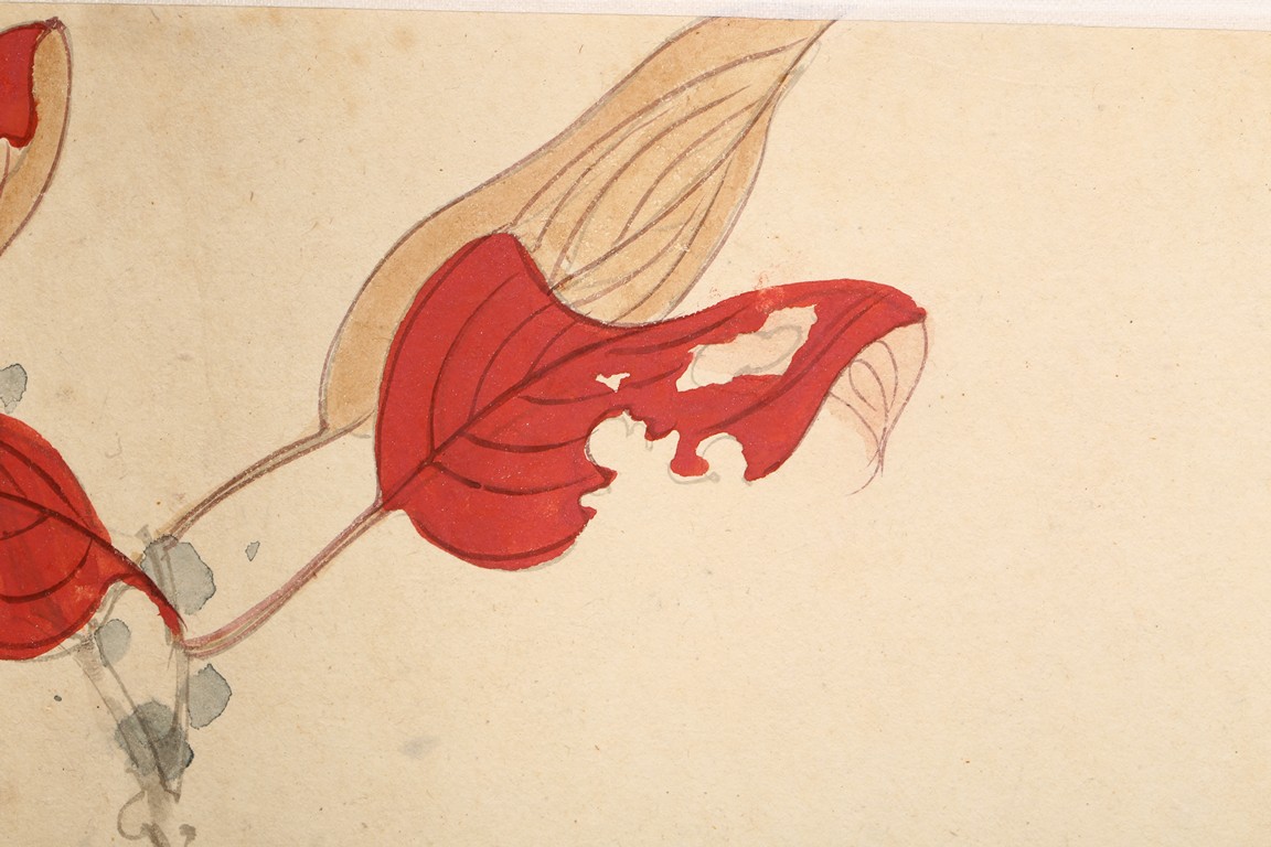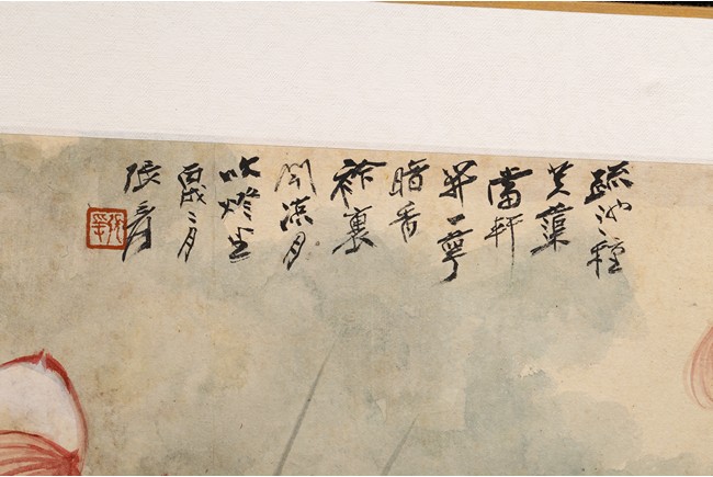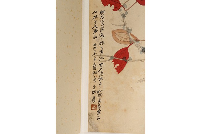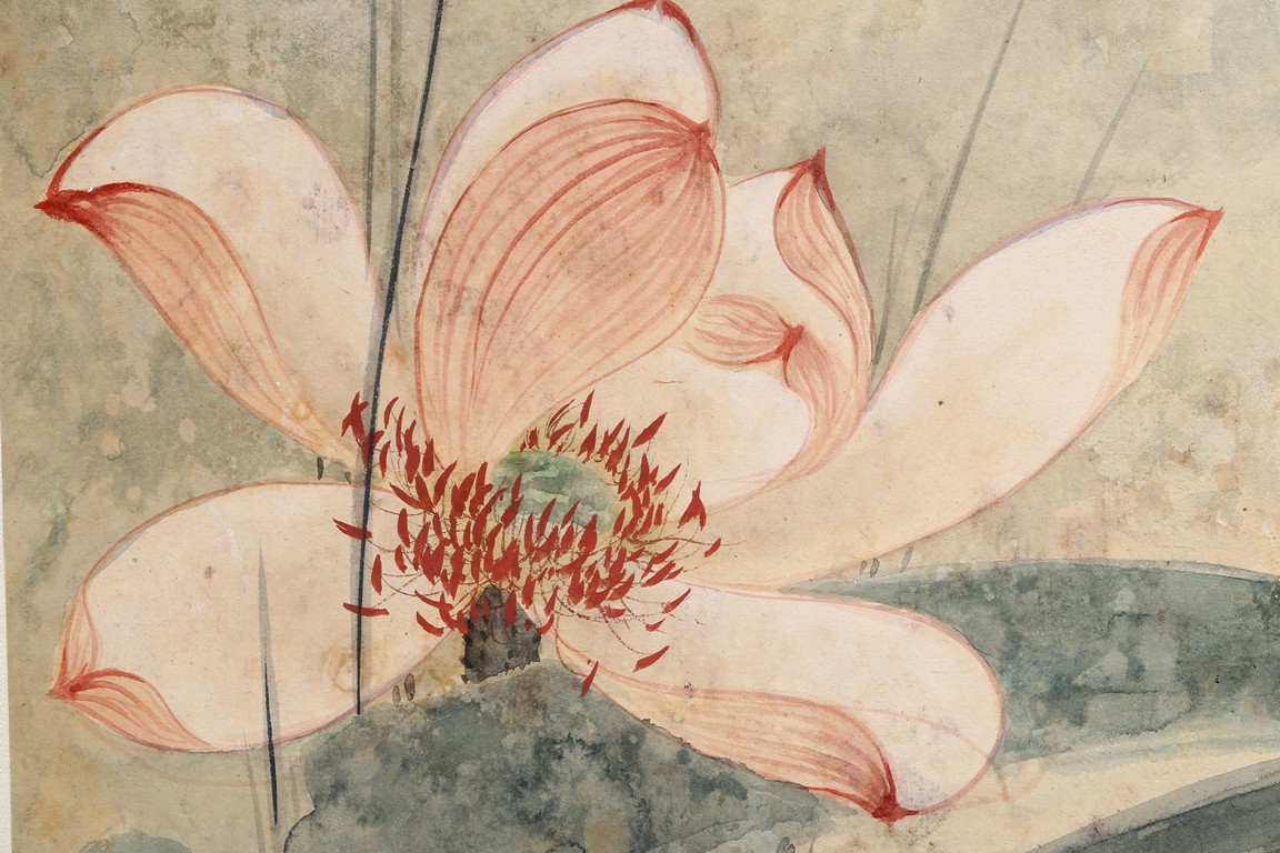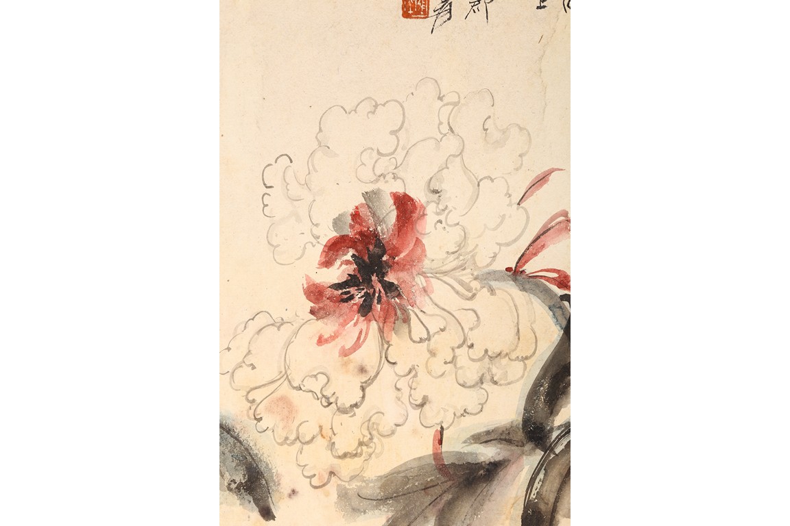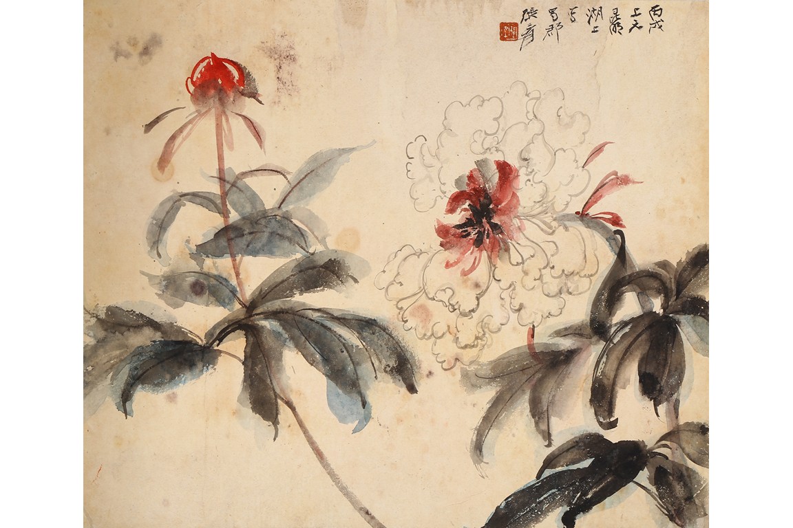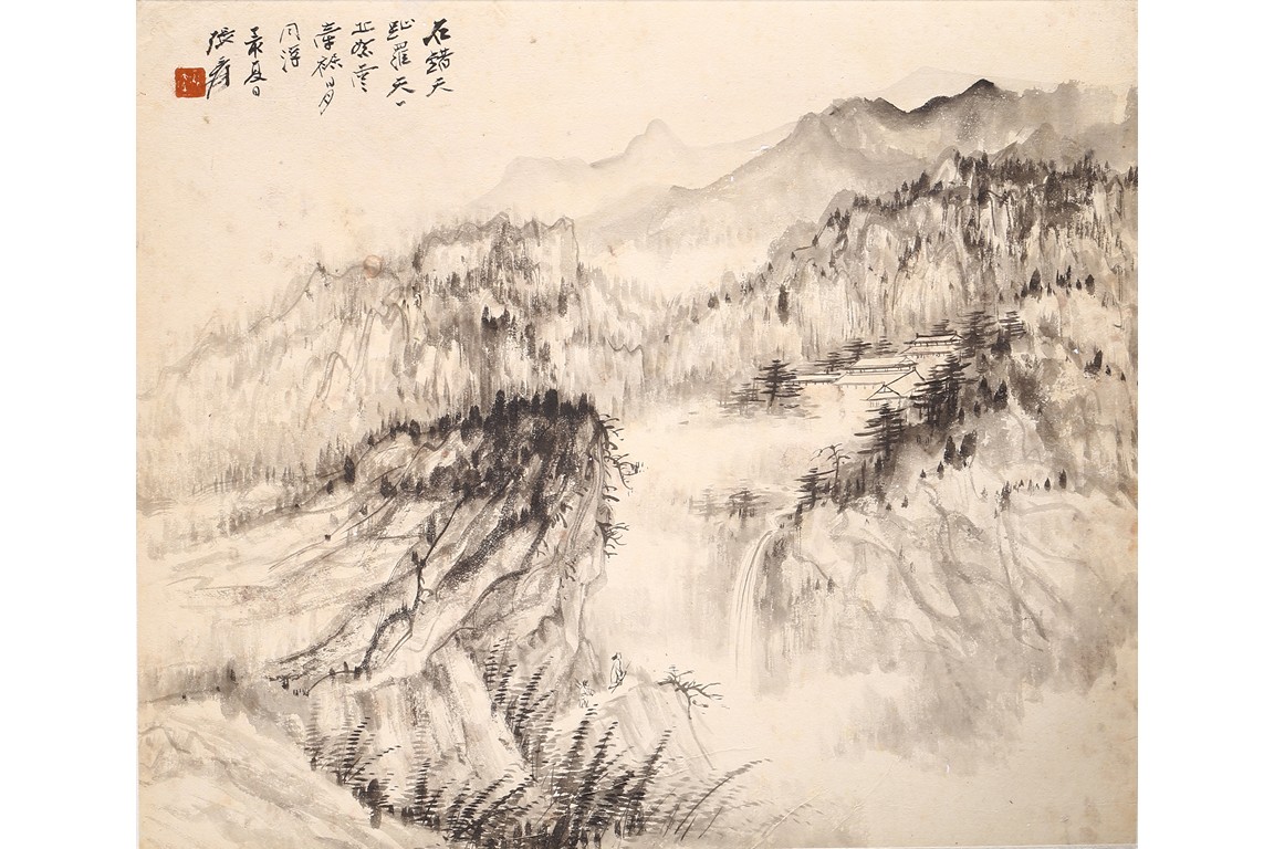 "This is a collection of Zhang Daqian (1899-1983)’ s masterpiece paintings during his prime time." Pink Red Lotus", " Bird Standing on Red Leaves Branch", "Peonies", and " Scenic View of Lofu Mountain", all those four paintings in this album were created between 1946 and 1947, his most creative period. 1.Pink Red Lotus沒骨粉荷 Album, ink and color on paper, 30.5 *35.9 cm Inscribed and signed: Zhang Ai One seal of the artist: Zhang Ai Dated 1946 2.Bird Standing on Red Leaves 紅葉小鳥 Album, ink and color on paper, 30.5 * 35.9 cm Inscribed and signed: Zhang Ai One seal of the artist:Zhang Ai Daqian Dated 1946 3.Peonies 沒骨芍藥 Album, ink and color on paper, 30.5 * 35.9 cm Inscribed and signed: Zhang Ai One seal of the artist: Zhang Daqian Dated 1946 4.Scenic view of Lofu Mountain 重山覽清流 Album, ink and color on paper, 30.5 * 35.9 cm Inscribed and signed: Zhang Ai One seal of the artist: Zhang Daqian Dated 1947"