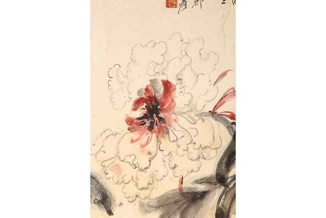 "張大千(1899~1983)名爰、字大千、四川內江人。他是二十一世紀以來海內外最負盛名、最有影響力及最有價值的國畫大師。本公司此次拍賣張大千山水花卉翎毛冊頁畫作(四開)作於1946到1947年間,是他創作力最豐沛的階段,體力眼力都支撐著他在藝術上作最好的發揮,許多傳世精品大作,都在此時問世。本次所拍賣的冊頁畫作有山水、花卉及翎毛等多樣題材,並有款題詩文多首,冊頁上畫作分別作於1946年至1947年間,畫作鈐印的「張爰」、「張大千」等各一小方朱文與小方白文印,皆由好友陳巨來先生於三、四十年代時所刻。畫作中的花卉飛禽與記遊寫生的藝術造詣。是大千此一時期創作靈感的高潮。類似題材,實在是彌足珍貴。本次拍賣《張大千山水花卉翎毛冊頁》 內容賞析如下︰ 圖一:沒骨粉荷 Pink Red Lotus 1946 款識:疏池種芙蕖,當軒開一萼,暗香襟裡聞,涼風吹燈坐。丙戊二月張爰。鈐印:「張爰」朱文方印 圖解:張大千畫彩荷主要吸收了北宋徐崇嗣和清代惲壽平的沒骨法,此圖繪寫粉紅荷二朵,一含苞、一盛放。畫家先用淺紅色勾勒出花瓣頂端的輪廓,花瓣中間部分略加白粉以水色暈化成之,最後加以硃砂點染瓣尖,使得花瓣猶如"美女舞蹈",嬌豔醉人。粉紅荷色彩層次變化豐富,畫面設色輕盈清麗,珠翠互親,得雅逸之韻致。丙戌年(1946)正是畫家工筆作品成熟之期,下筆似信手拈來,精工細寫卻如自然天成,雅緻風情。圖二:紅葉小鳥 Bird Standing on Red Leaves Branch 1946 款識:秋思婆娑近己疏,乍寒況是夕陽餘,每每如醉霜前葉,仍是坡公覓酒初。丙戊嘉平昆明湖上寫 大千張 爰。鈐印: 「張爰」朱文方印 圖解:張大千的早年花鳥圖大多屬於勾花點葉的小寫意,筆墨淸新,設色雅逸。 1943年秋,敦煌禮佛歸來後,畫風丕變,花鳥畫皆採宋人折枝寫生畫法,往往在畫裡取一折枝配一小鳥,花卉的枝幹柔中帶剛,用筆華滋多變,敷色清雅鮮活,意境閑逸。此幅「紅葉山雀圖」裡小雀物態栩栩如生,活潑開朗,枝桿上留有幾片紅葉,有前伸、有後延、有向背、有正側,然而,大師再利用葉脈、葉邊、葉面的彎曲,凹凸和深淺的變化,把葉子的不同姿態和厚實的質感表露無遺,其中數片葉子上的蟲眼,不僅精緻自然,也給畫面增添了幾分生機與動感。圖三: 沒骨芍藥 Peonies 1946 款識: 丙戌上元昆明湖上寫 蜀郡張爰。鈐印:「張大千」白文方印。圖解:所謂"沒骨",指的是不以墨筆勾勒,僅用顏色點戳。沒骨花卉一格,不同於勾线染色的工筆筆法,花卉以清妍艷麗為主,完全用顏色去表現,從而有更加自由的表現空間。畫法創始於北宋徐崇嗣,蘇轍曾言:"徐熙畫花落筆縱橫,其子崇嗣變格,以五色染就,不見筆跡,謂之沒骨。"至清初,惲壽平筆下沒骨花卉具骨氣而形似,愈趨雋雅。畫花瓣時,可全用顏色,或可用水墨點戳,後略施淺色。畫芍藥,先用淺紅色及白粉組成花形,再用大筆蘸墨層層渲染出芍葉,畫出畫面層次變化,富有立體感而濕潤自然。張大千對花卉觀察至深,此幅《沒骨芍藥》作品設色淡雅出塵,將芍藥嬌艷欲滴、含羞帶情的氣質表現得淋漓盡致。圖四 重山覽清流 Scenic View of Lofu Mountain 1947 款識:石錯天趾,羅天一丘;絮雲牽裾,日月同浮。丁亥夏日 張爰 鈐印:「張大千」白文方印。圖解:羅浮山素有百粵群山之祖、蓬萊仙境,及嶺南第一山之稱,它位於廣東東江之濱,山勢雄偉壯麗、林木茂密、自然風光旖旎。秦漢以來號稱仙山,史學家司馬遷把羅浮山比作"粵岳",是中國十大名山之一。畫面使用特殊的鳥瞰平遠透視法及採用石濤喜用之卷雲皴兼北董源披麻皴畫法,繪出羅浮山巒、溪水樹石,層層疊疊,佈局沈穩,筆法蒼健,使得羅浮山巒更具有寫實感,實為一幅不可多得的盛年期山水佳作。"