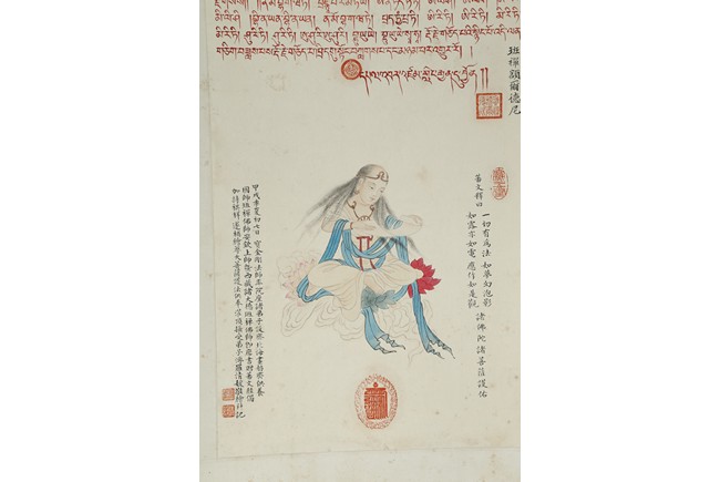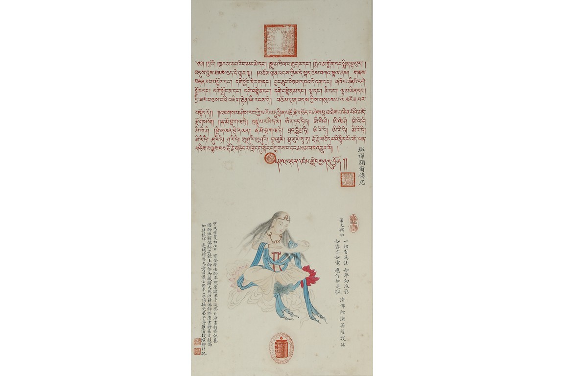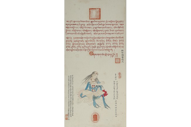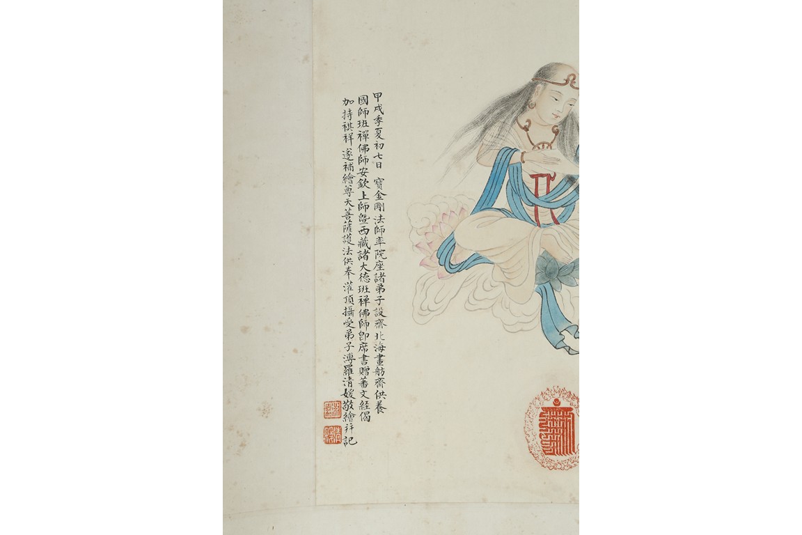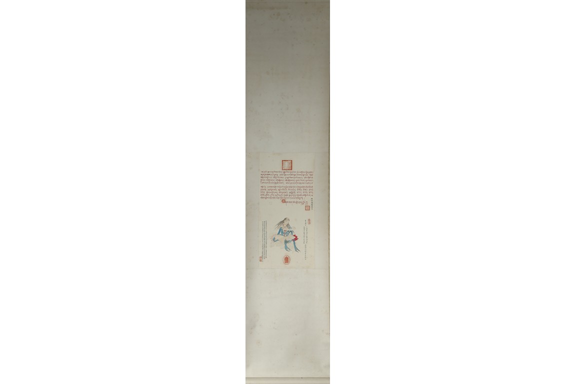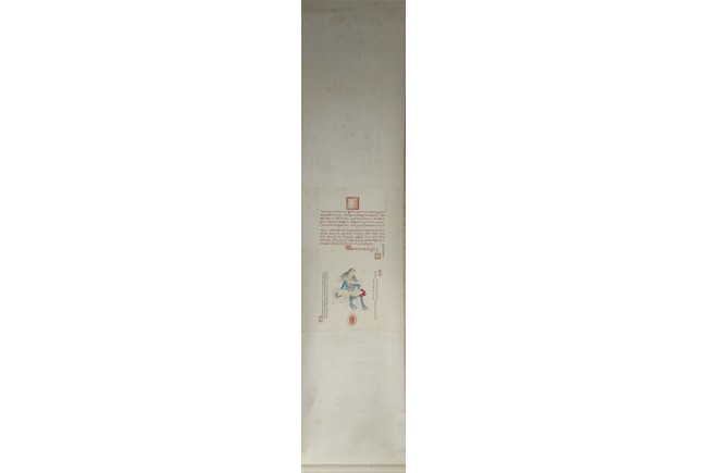 Color and ink on paper. Figure. Hanging scroll. Inscribed and signed, with seven seal marks.