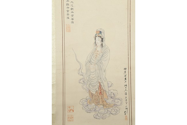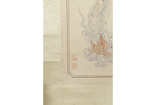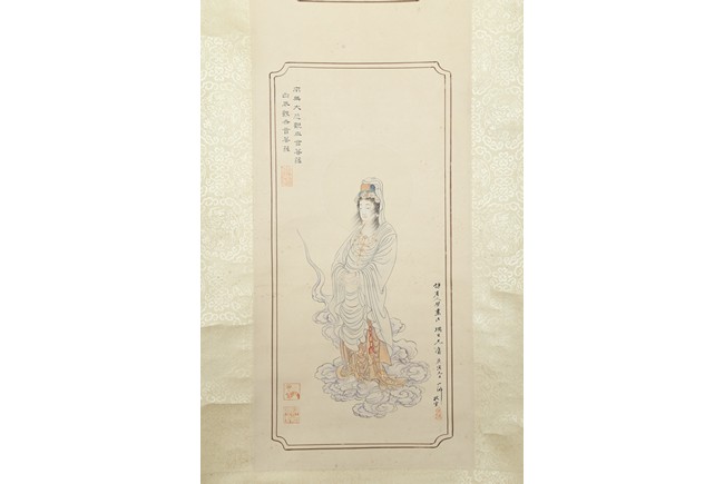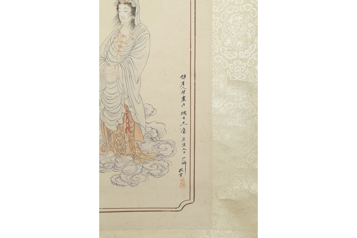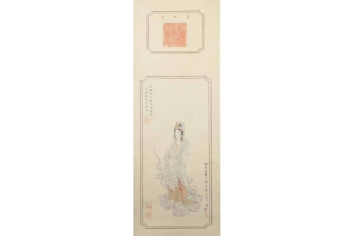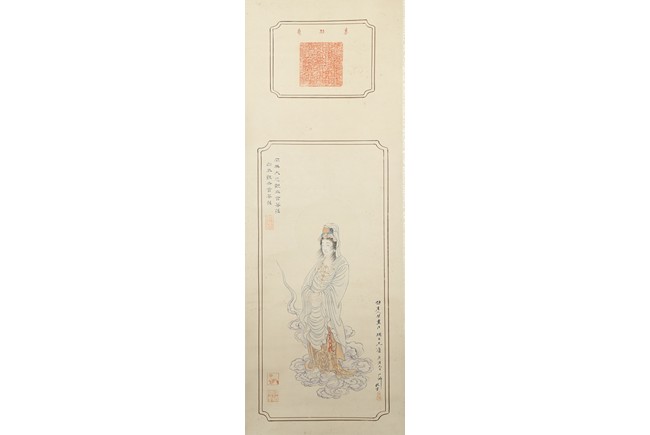 Color and ink on paper. Figure. Hanging scroll. Inscribed and signed, with five seal marks. Hu Yefo (1908-1980)