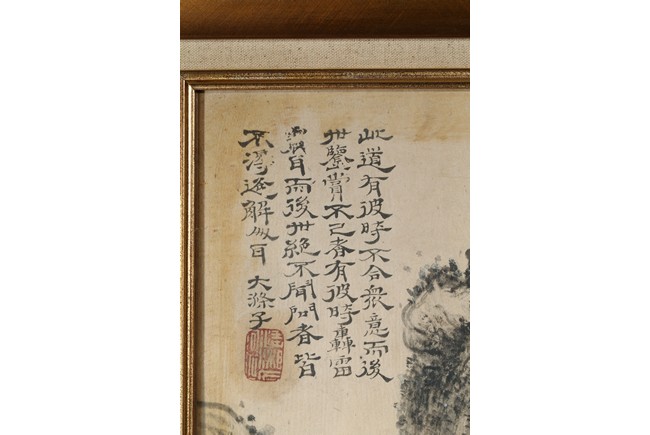此石濤山水鏡片畫工及書法一流,所畫山水栩栩如生,佈局合理,此畫為石濤先生中晚年所畫,堪稱精品,極為少見。洛杉磯白人藏家提供。