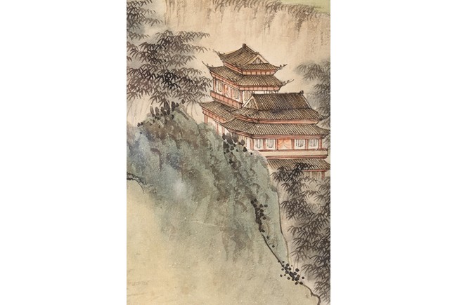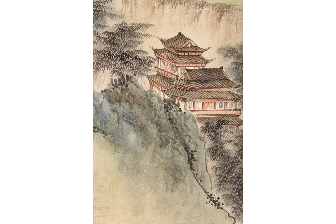 PU RU: COLOR AND INK ON PAPER 'LANDSCAPE' PAINTING 溥儒 山水 設色紙本 鏡框