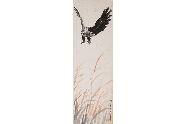 Color and ink on paper. Eagle. Hanging scroll. Inscribed and signed, with one seal mark. Xu Beihong (1895-1953)