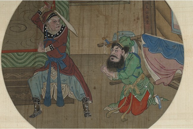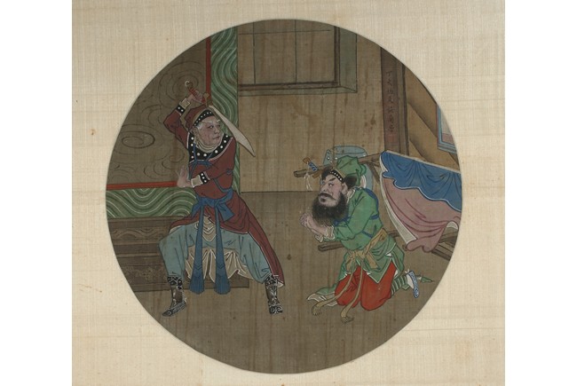 COLOR AND INK ON SILK CIRCULAR FAN PAINTING 京劇人物 圓扇面 設色絹本