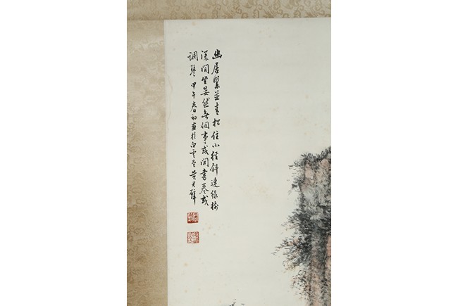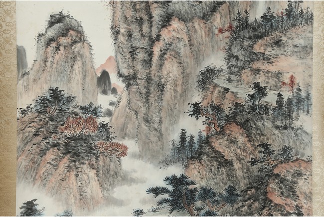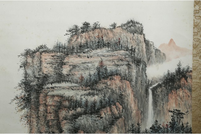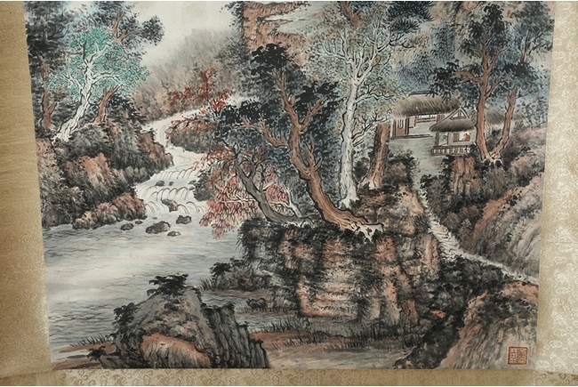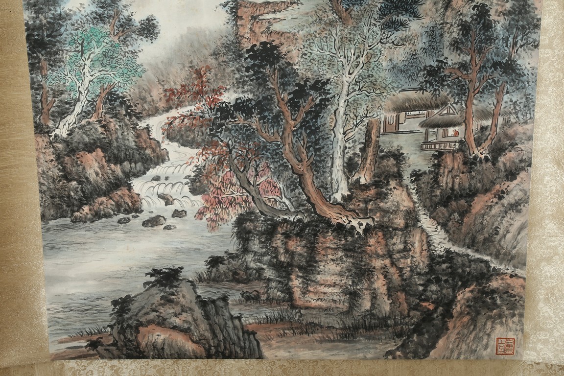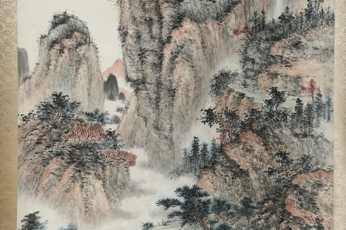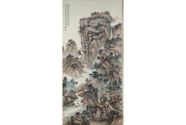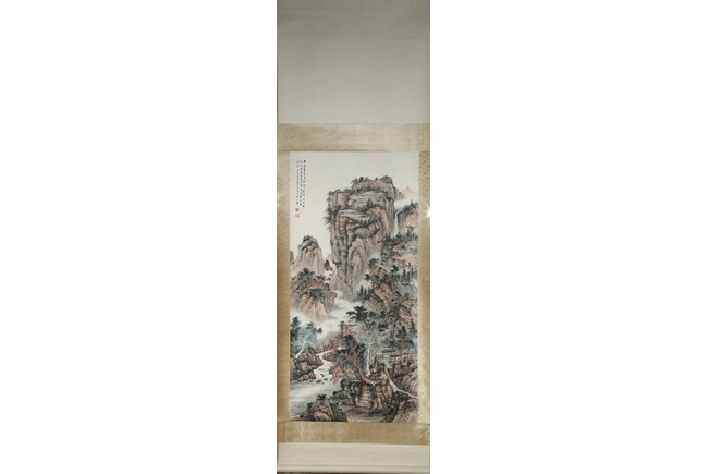 Color and ink on paper. Landscape. Hanging scroll. Inscribed and signed, with one seal mark. Huang Junbi (1898-1991)
