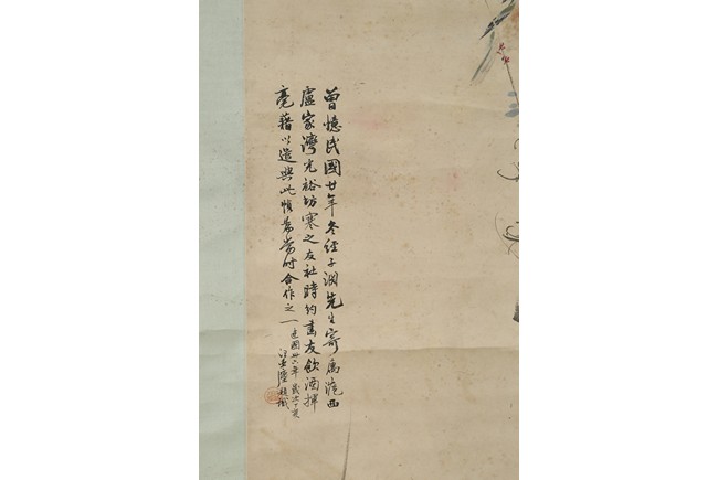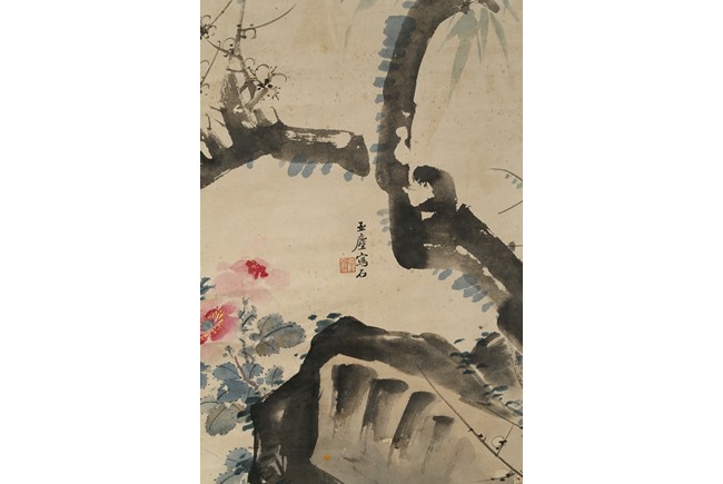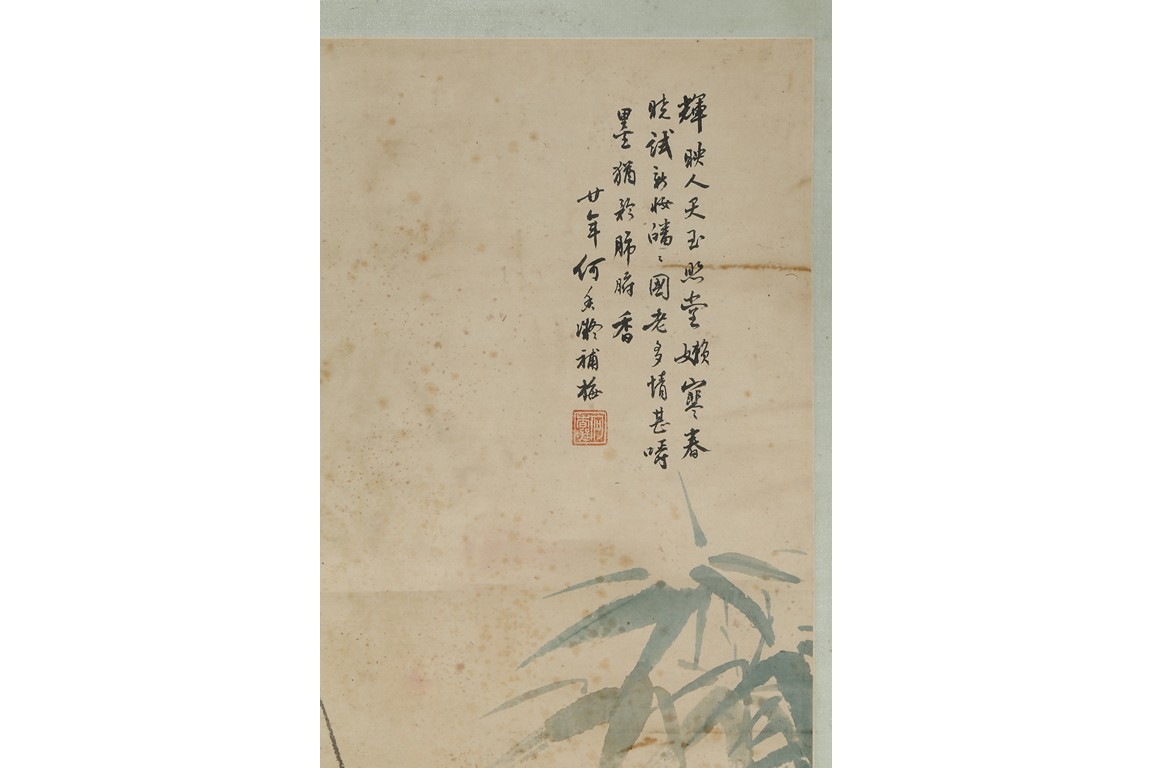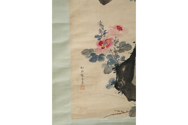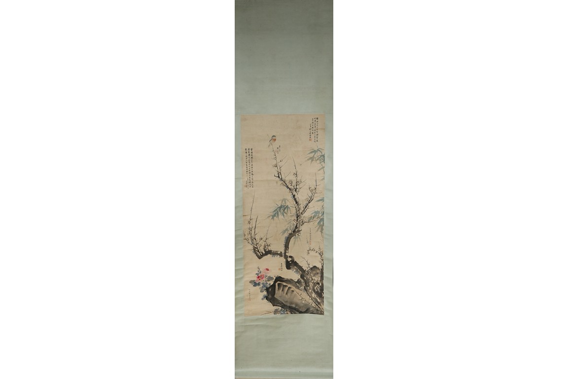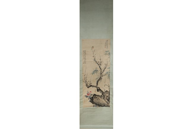 Color and ink on paper. Flower and bird. Hanging scroll. Inscribed and signed, with six seal marks. He Xiangning (1878-1972)
